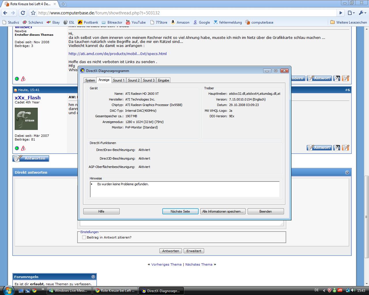 Habe eine ATI Radeon HD 2600 XT Grafikkarte u es enstehen bei jedem Schuss, der fällt, rote Kreuze auf dem Bildschirm...