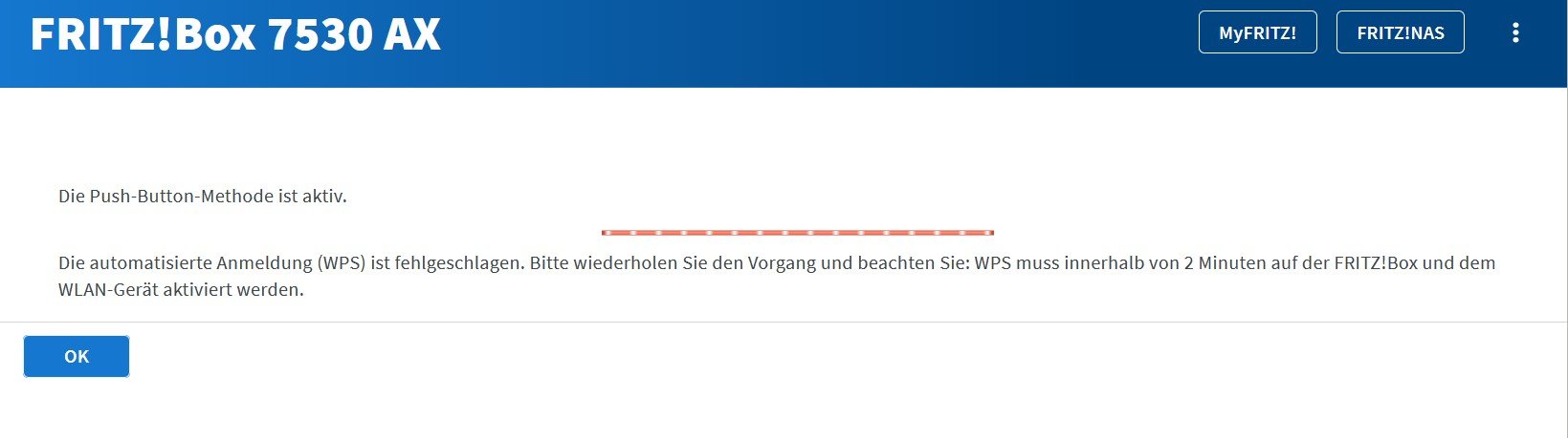 zunächst meldete das Gerät die Verbindung o.k., nach ca. 2 Min Meldung: