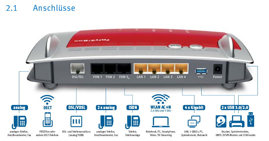 Ein Problem der Fritz!Box ist, dass sie keine externe Antennen hat und dadurch die WLAN-Leistung geringer ist, als bei einem Router mit externen Antennen. Die Router anderer Hersteller, wie z.B. ASUS DSL-AC68U, haben meist aber keine Möglichkeit ein Telefon anzuschließen.