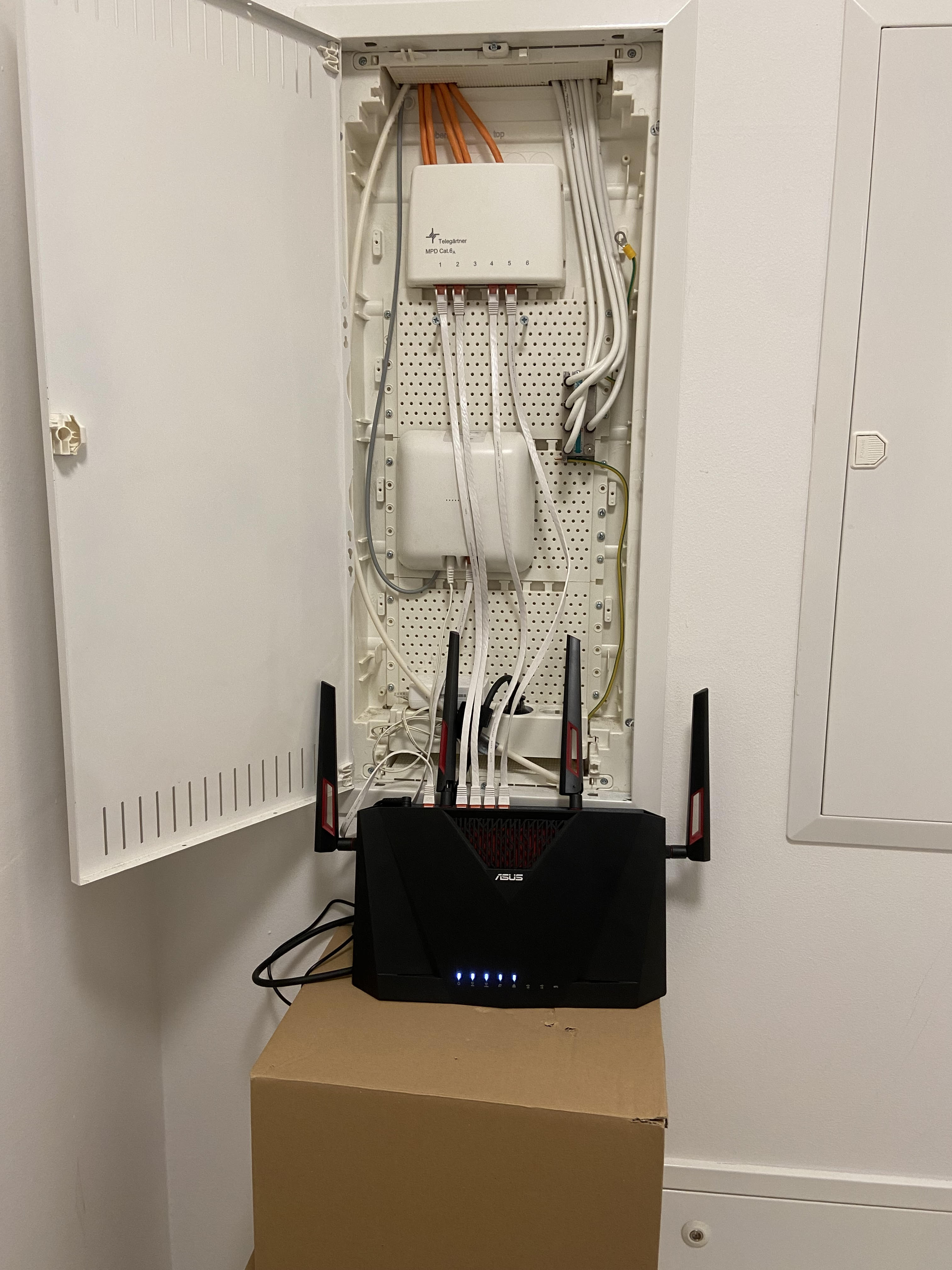 Das ist an sich alles schön und gut und das Setup funktioniert auch wie gewollt. Allerdings passt der Router physisch aufgrund seiner Größe einfach nicht in den Stromkasten, was natürlich an der Größe eines durchschnittlichen Routers liegt. Ich hatte vorher einen deutlich kleineren Router, der aber auch nicht reingepasst hat, insofern ist es etwas müßig sich über andere Modelle Gedanken zu machen. Auch eine Fritzbox (bereits versucht) passt inklusive der 4 Kabel, welche die Zimmer mit Internet versorgen müssten schlicht und einfach nicht rein. Da wir in diesem Bereich eine Garderobe einrichten wollen und sich das auch einfach im Eingangsbereich sehr unschön darstellt, wollen wir für dieses Problem eine Lösung finden.