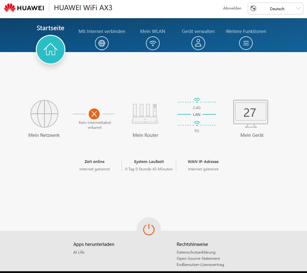 Aber ich bekomme immer "nur" 400 bis 650 mbit zustande. Dann habe ich mir einen Huawei WiFi 6 Router für 50€gekauft. Den Per LAN an die FB angeklemmt. Fritzbix LAN 3 und WAN in dem Huawei. Aber ich habe jeter das "Problem" das der Router einen IP Bereich hat 192.168.180.xx und normal habe ich ja 192.168.178.xx.