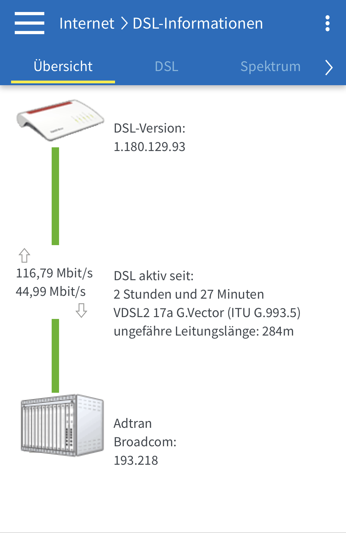 Das müssten dann aber auch die Nachbarn haben, wenns am Verteiler liegt.TheCadillacMan schrieb:Der 20/1,5 Mbit/s-Sync ist vermutlich ein Vectoring-Rückfallprofil. Das wäre eigentlich für Modems ohne Vectoring-Support gedacht kommt aber im Störungsfall auch mal vor.