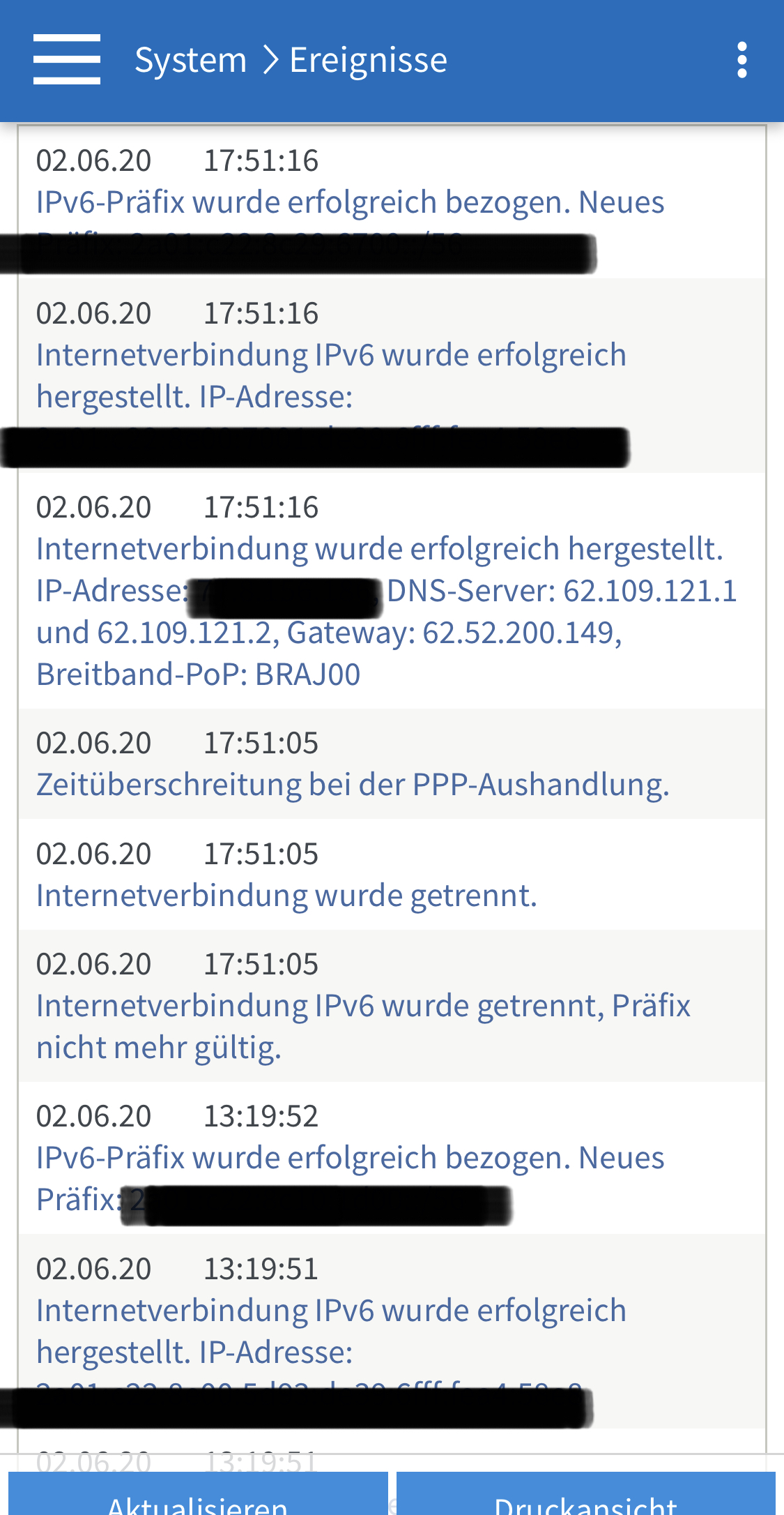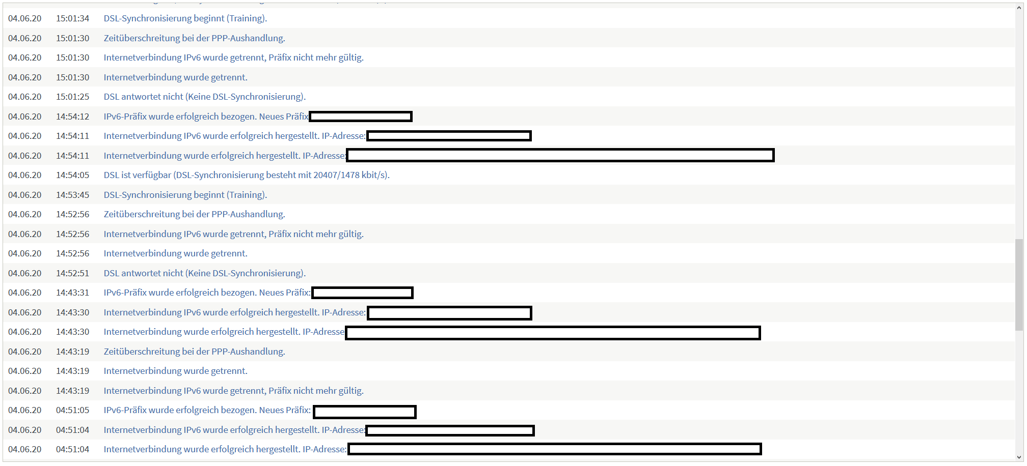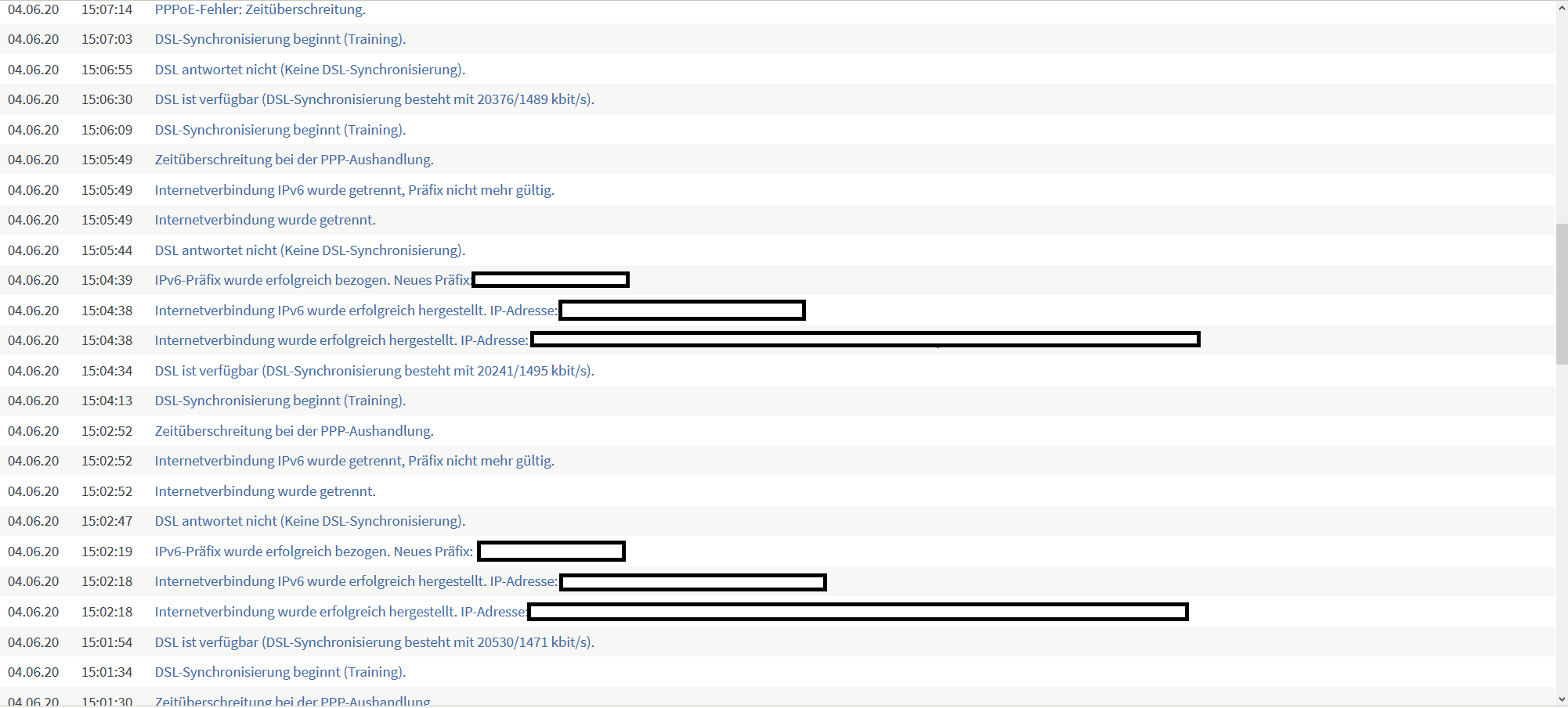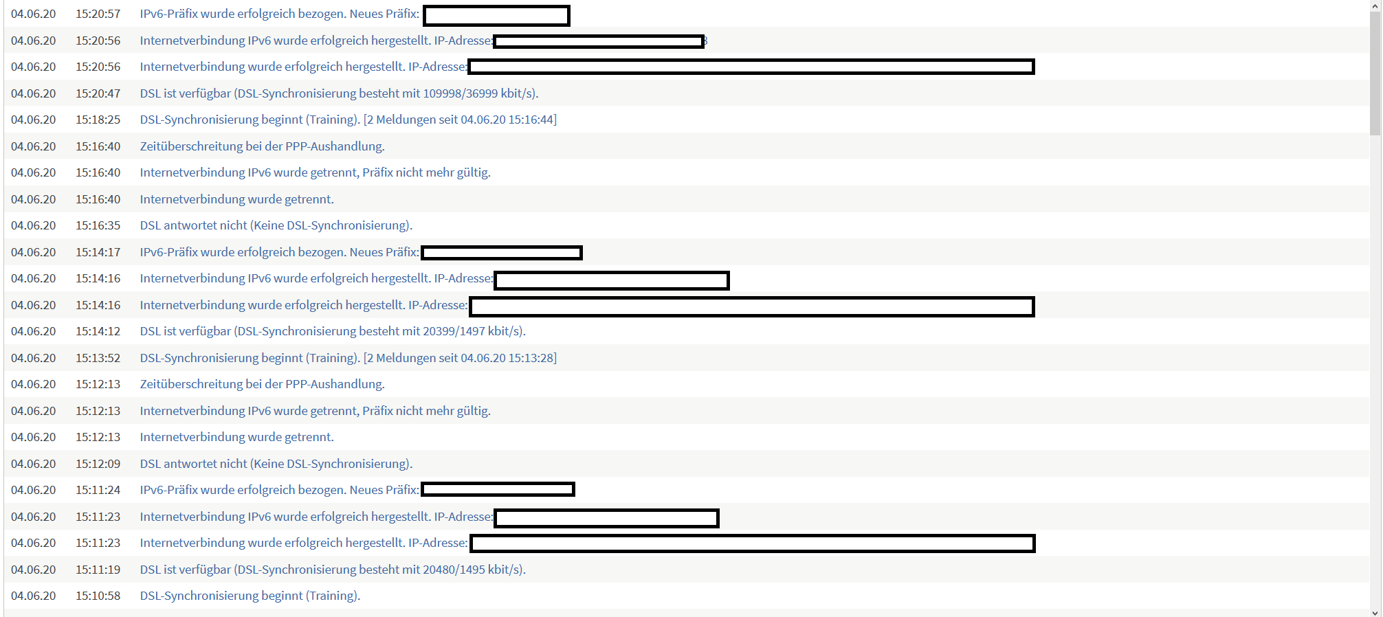 Da wurde nur die PPPoE-Verbindung getrennt. Das passiert bei 1&1 sowieso alle ~24 Stunden einmal. Deutlich öfter sollte es aber nicht sein.StiFler91 schrieb:Habe den Screenshot mal neu hochgeladen. Es waren 10 Sekunden.