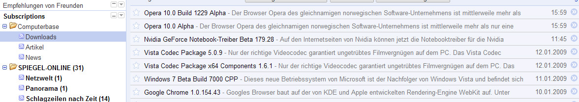 Im Firefox sind die neusten vom Dezember und beim Google Reader und dem RSS Feed fehlt die hälfte von dem aktuellen Downloads!