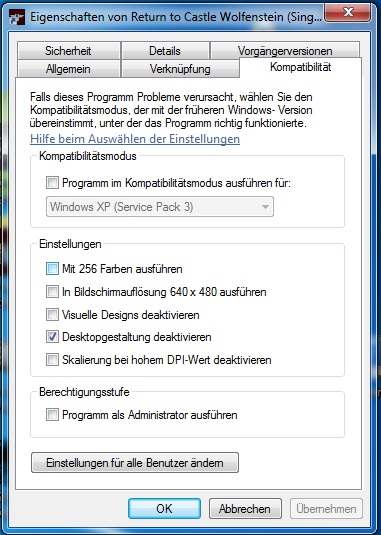 Ausserdem sieht es bei mir zu den Kompatibilitätseinstellungen so aus: