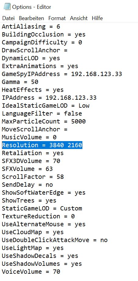 1600 1200) und muss wieder in Options.ini von Hand eingetragen werden.