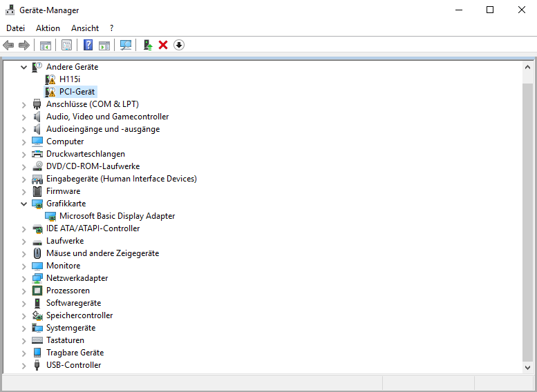 Im Geräte-Manager habe ich ausgeblendete Geräte sichtbar gemacht und unter dem Raster "Andere Geräte" steht "PCI-Gerät". Die Karte habe ich an den unteren PCI Steckplatz gesetzt und wieder zurück, leider hat das nichts gebracht.