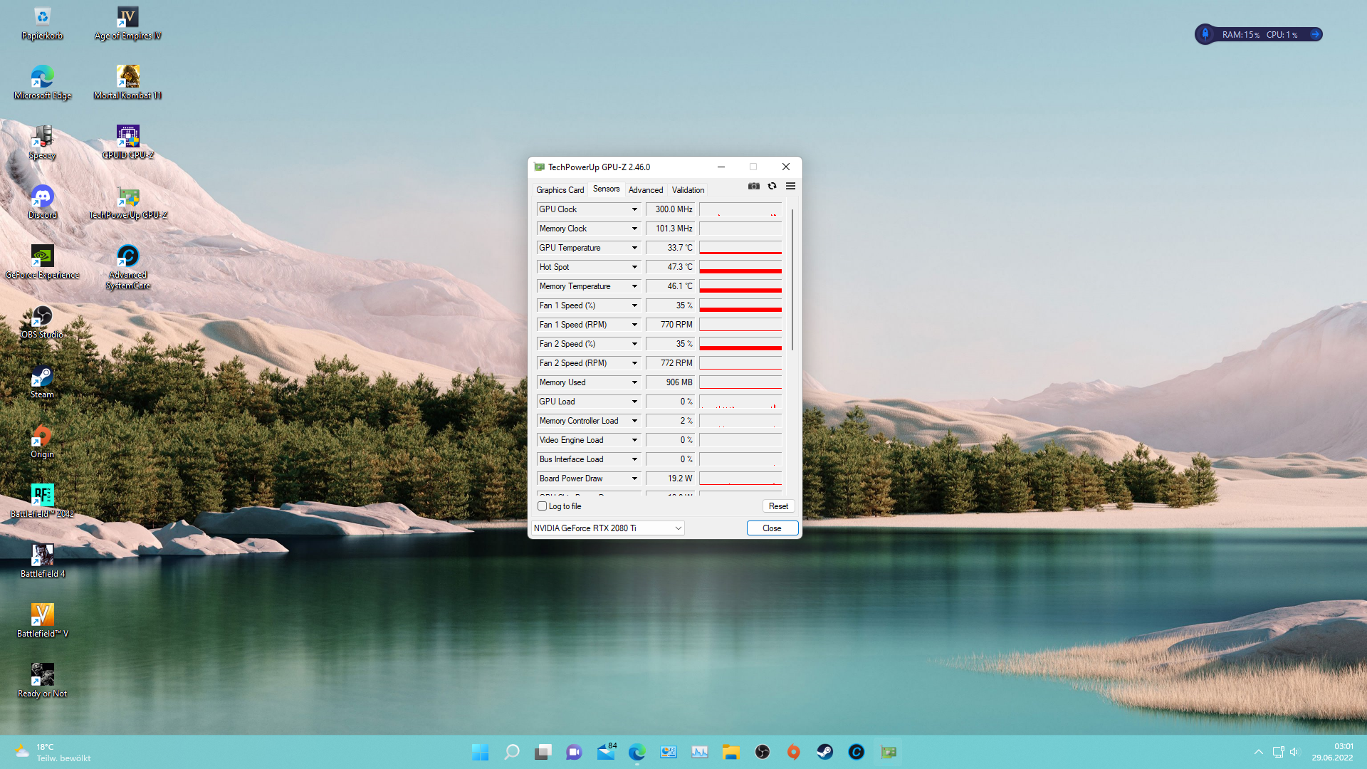 vor einer Woche habe ich Geforce Experience bereits deinstalliert, und nur Treiber Installiert, hat sich aber nichts geändert, das wegen Schließe ich es ab vor erst, und nutze diese weiter, weil ich kein unterschied gemerkt habe, BIOS resett bereits gemacht, die GPU war zu laut im zweitem Slot wegen Lüfter, und es pipste 2 biß 4 mal aber nicht sicher, ich habe eine Nvidia GTX 1070 die werde ich mal rein stecken mal sehen, und neue Windows habe ich bereits auf andere ssd Installieret hat nichts gebracht, die war früher für Spiele gedacht die habe ich neu Formatiert und Windows drauf gemacht, leider ohne Erfolg selbe Probleme. unten sind bilder von GPU Z - Sensoren.