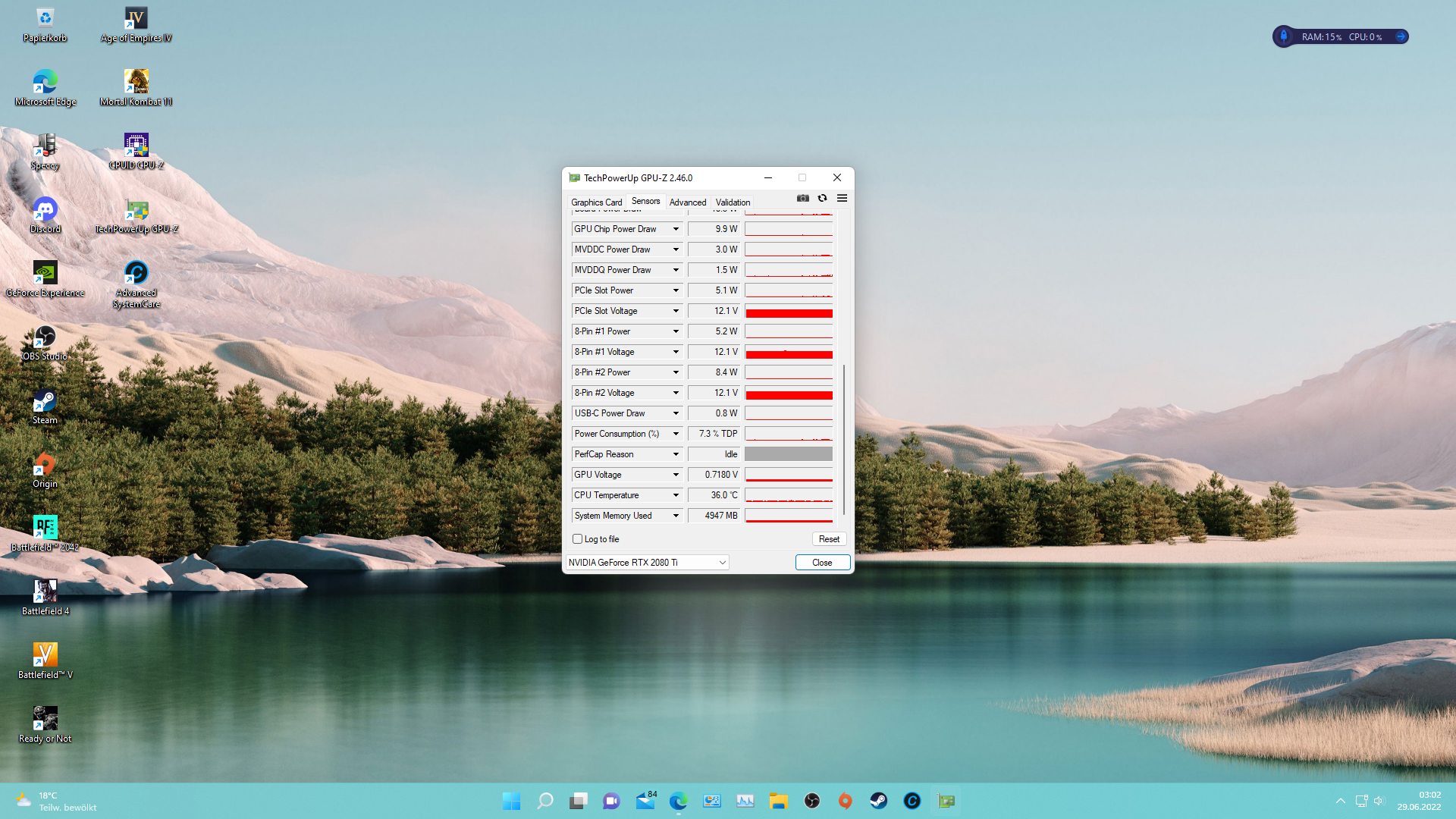 Aber dennoch - wenn du noch mal die 2080 Ti testen magst, dann öffne GPU-Z, Sensoren und links kannst du auf die einzelnen Sensoren klicken und einstellen ob aktueller Wert, minimaler Wert oder maximaler Wert angezeigt werden soll. Da kann man nach belieben durch klicken.