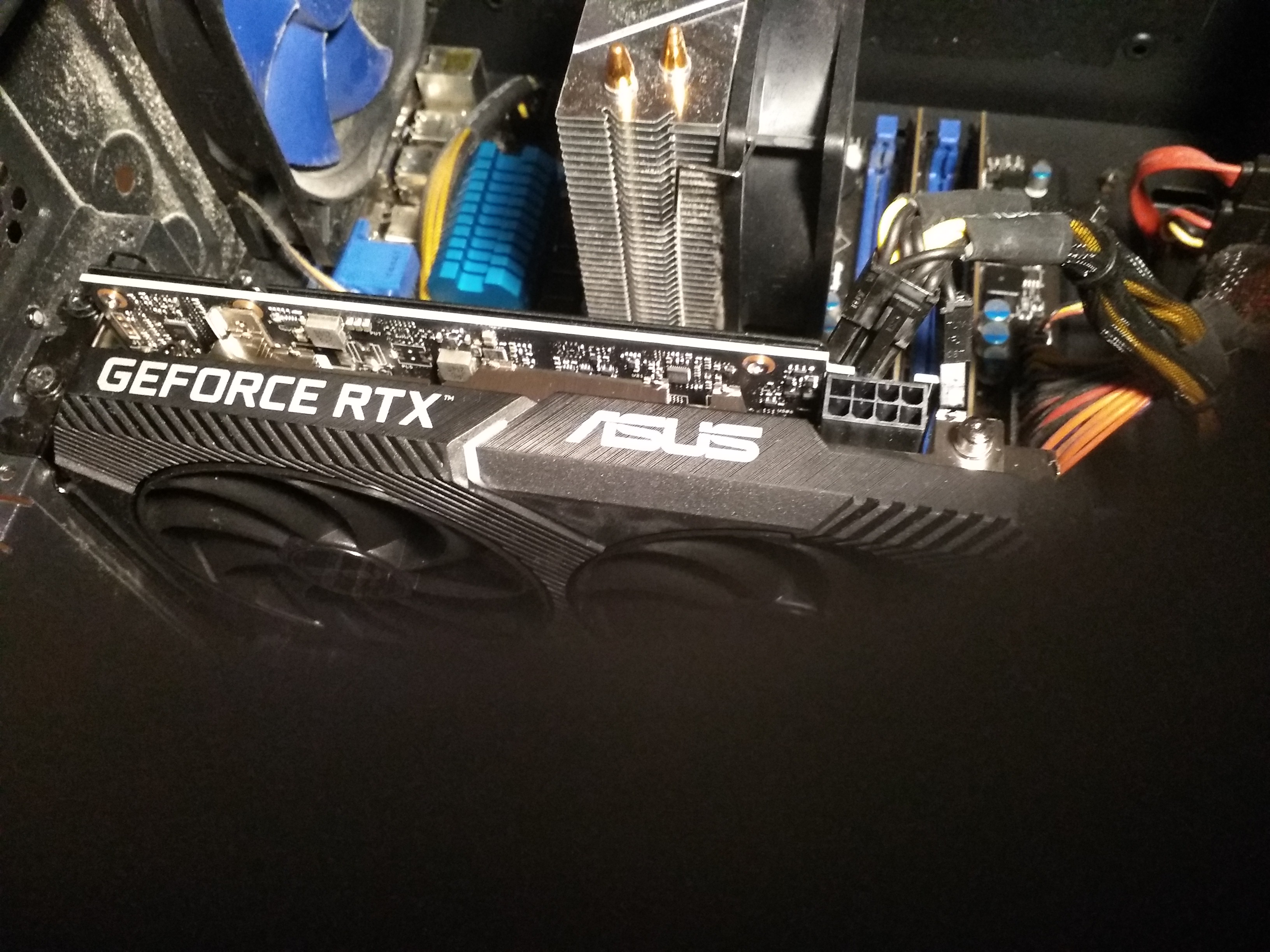 Ich nehme den Stecker der zuvor in der alten Grafikkarte gesteckt hat (nur als 6 pin) . Das Kabel ist auch recht kurz. Ich habe schon einen Kabelbinder entfernt um mehr Spielraum zu haben.