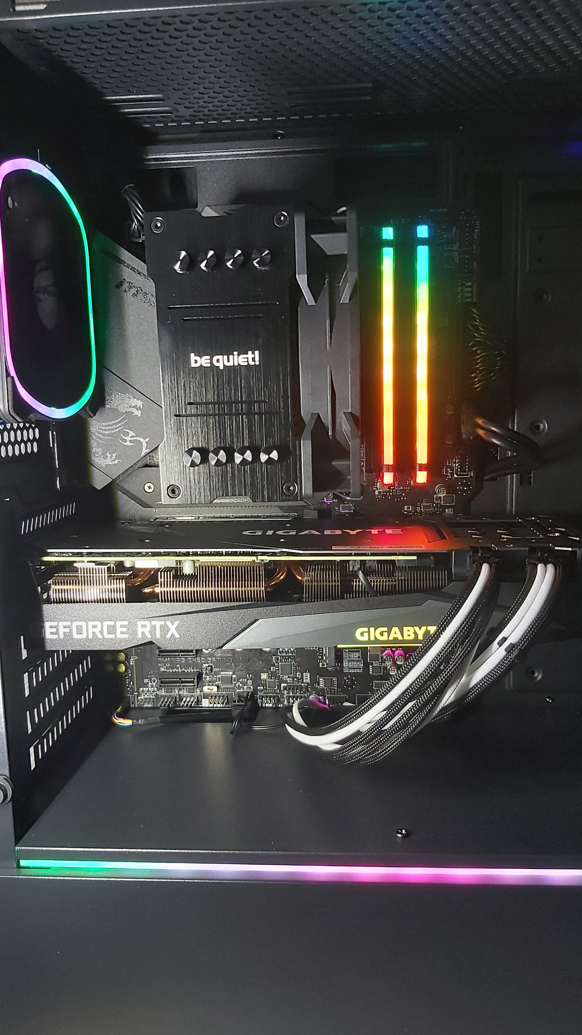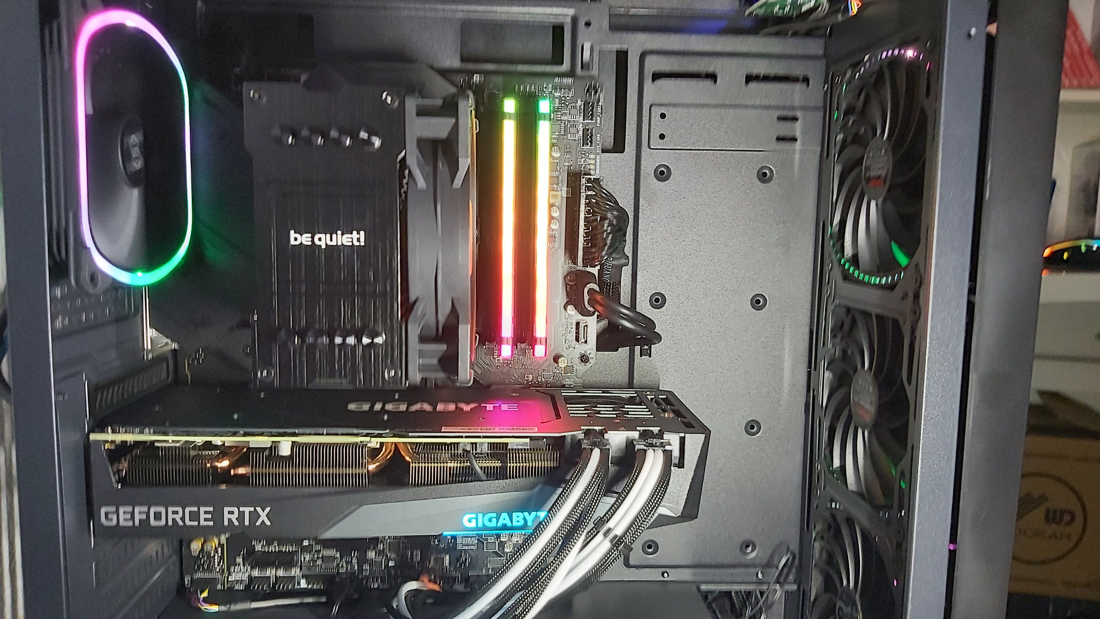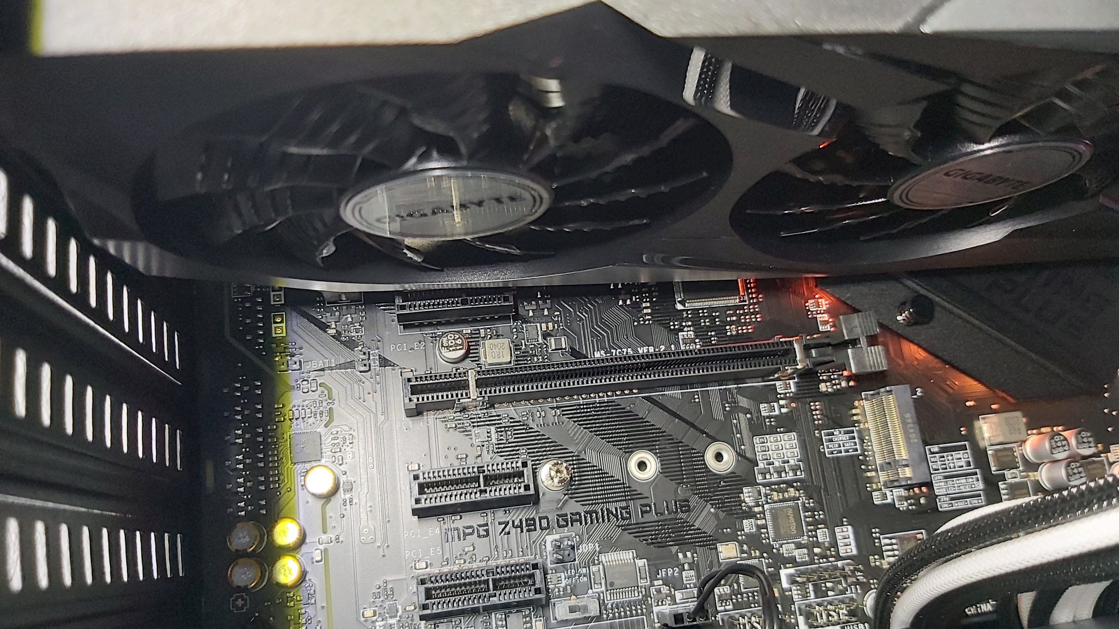 Das Bild scheint aber aus der 3060 Ti zu kommen, denn da ist das Monitorkabel dran. (Oder ich gucke falsch.)