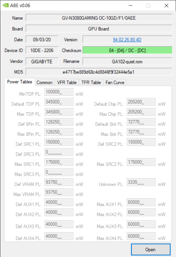Die Zotac Trinity 3080 OC hat ein Powerlimit von 320 Watt, es lässt sich jedoch auch das Bios der Zotac Trinity 3080 (ohne OC) installieren, welches ein Powerlimit von 336 Watt zulässt. (dieses habe ich vom Zotac Support zugeschickt bekommen)
