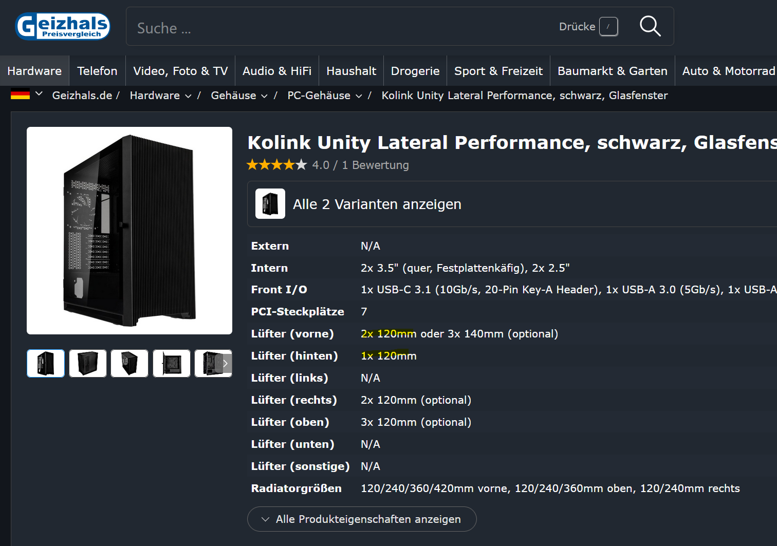 Lüfter (vorne)2x 120mm Lüfter (hinten)1x 120mm
