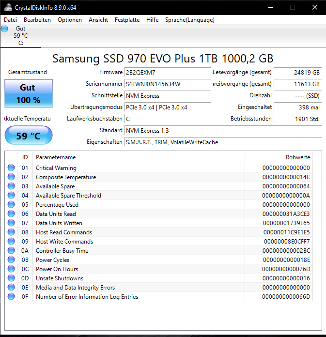 • HDD / SSD: Samsung Evo 970 Plus 1TB /Seagate 4 TB
