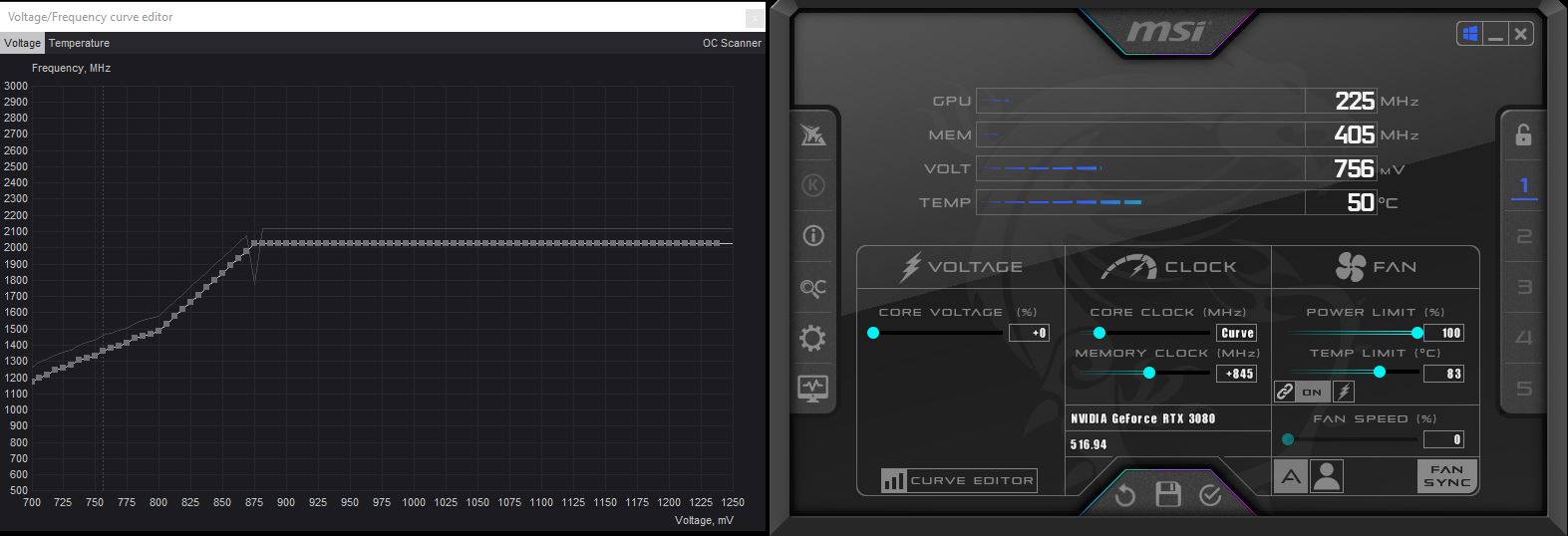 • Grafikkarte: Gigabyte RTX 3080 12GB (undervoltet 2000MHz bei 875mV)