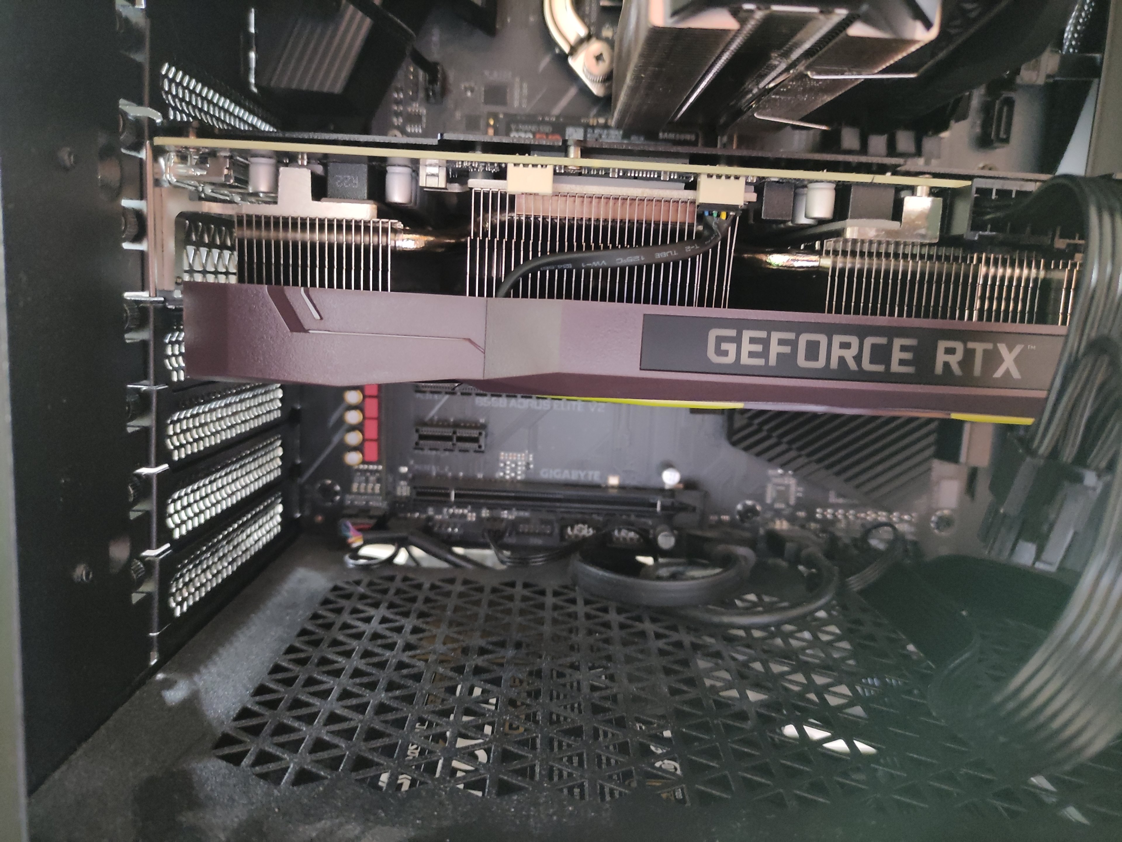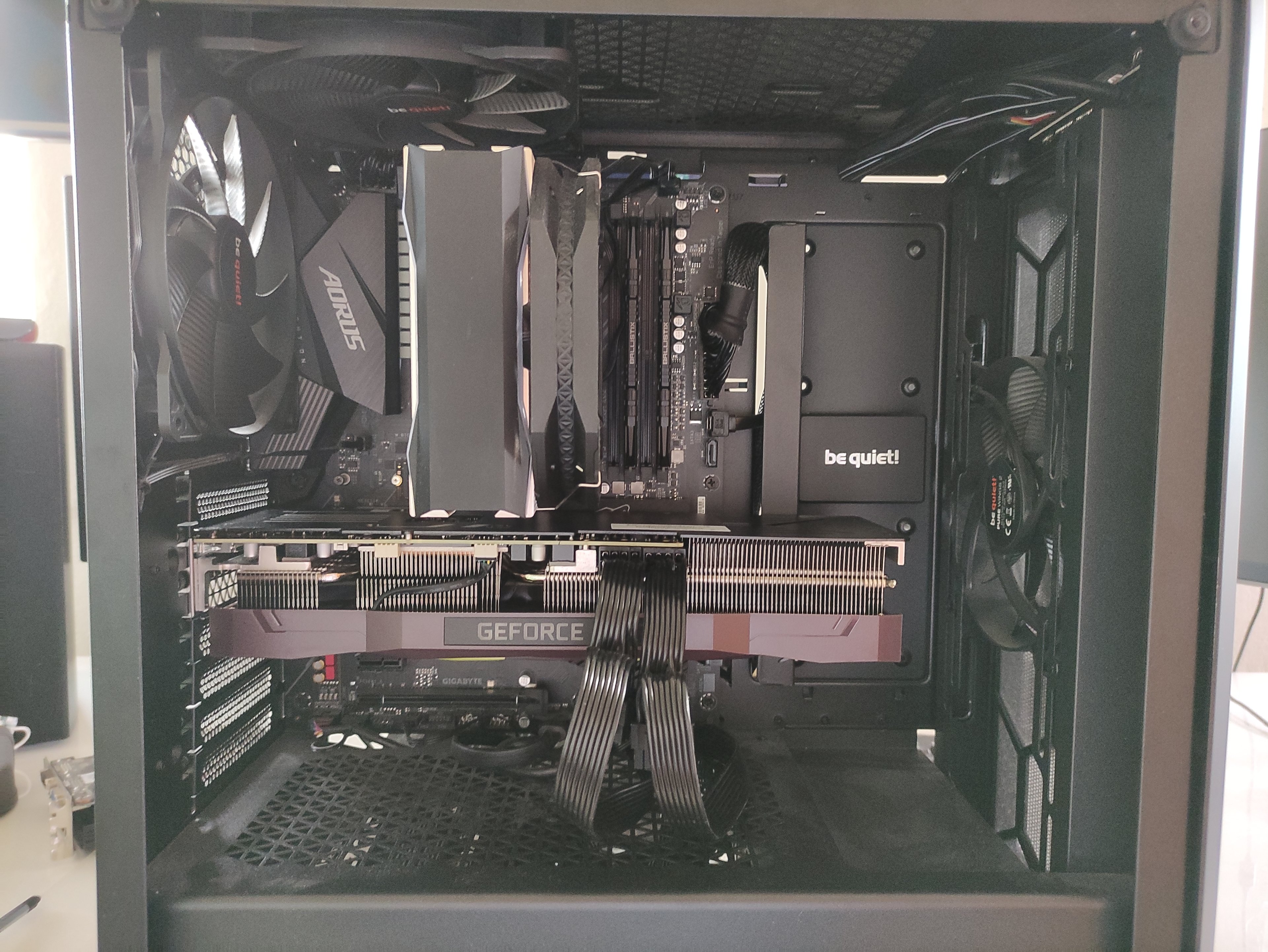 Neues PSU eingebaut, gleiches Ergebnis wie jetzt auch, nur mit anderer GPU. Rechner startet normal, lässt sich per Tastenkombination ausschalten, LEDs leuchten in eingestellten Farben, Lüfter regeln sich nach start des Programmes runter, GPU wird warm, aber es ist nicht möglich ein Bild zu bekommen, auch nicht vor Windows (BIOS start usw.). Alles mögliche versucht, BIOS reset, Grafiktreiber neu installiert, kein Unterschied. Also alte 8600GT eingebaut und alles funktioniert, auch in einem anderen PCIe slot. Danach Einbau der GTX 650ti, auch funktionabel, komplett problemlos. Daraus habe ich den Schluss gezogen, dass die RX6800XT kaputt ist, habe diese bei AMD eingesendet und bekam mein Geld zurück, da diese keine neuen GPUs auf Lager hatten. Mit dem Geld habe ich mir dann die PNY RTX3080 12GB Triple fan gekauft und nach dem Einbauen habe ich nun das gleiche Problem wie mit der RX6800XT.