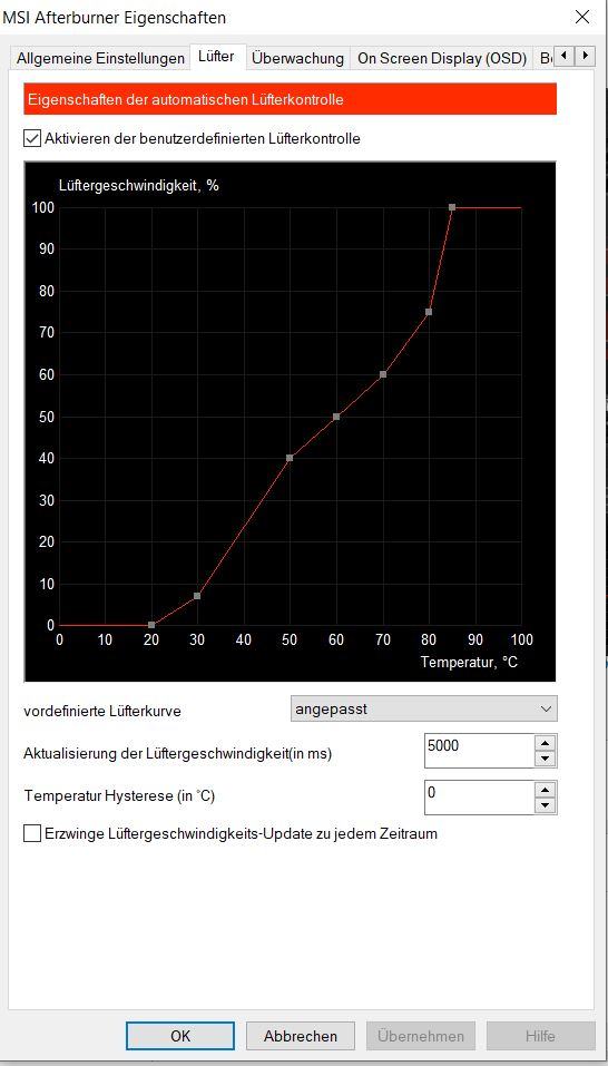 - manuelle Lüfterkurve juckt die Karte nicht unter 800 rpm .. keine Ahnung wie viel % das entspricht..
