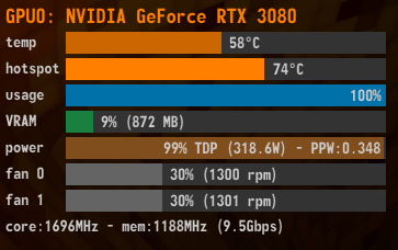 Die Karte drosselt im Temp Limit auf 250W Verbrauch runter (normal 320W) und trotzdem reichen die 3000 RPM nicht.