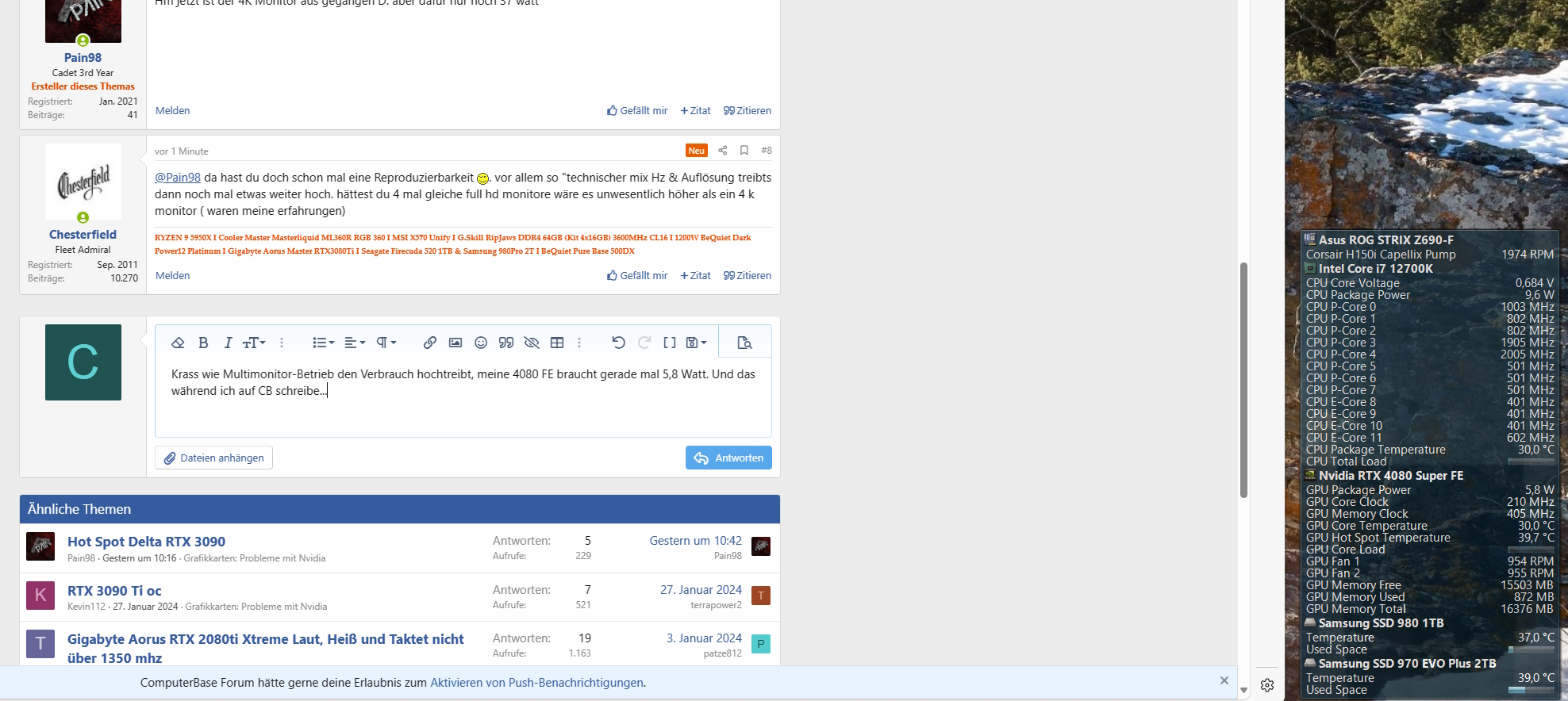 2. Beschreibe dein Problem. Je genauer und besser du dein Problem beschreibst, desto besser kann dir geholfen werden (zusätzliche Bilder könnten z. B. hilfreich sein): Grafikkarte verbaucht im Idel über 100 Watt an Strom.