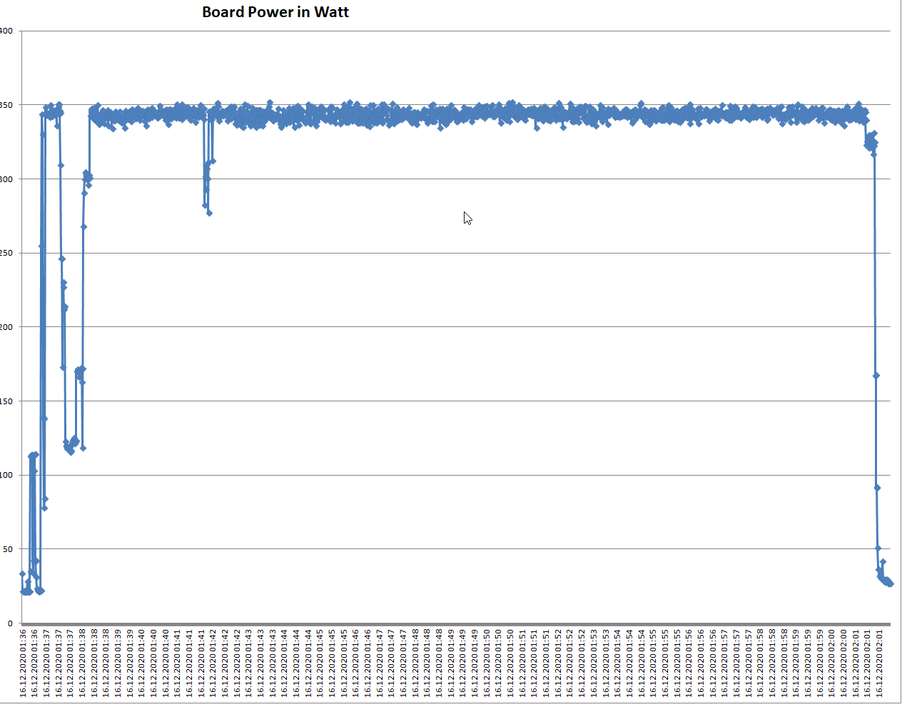 Ich weiss nicht, ob GPU-Z auch Spitzen zeigt (Auflösung 1 Messwert pro Sekunde). Der max. Wert für Board Power Draw war 353 W.