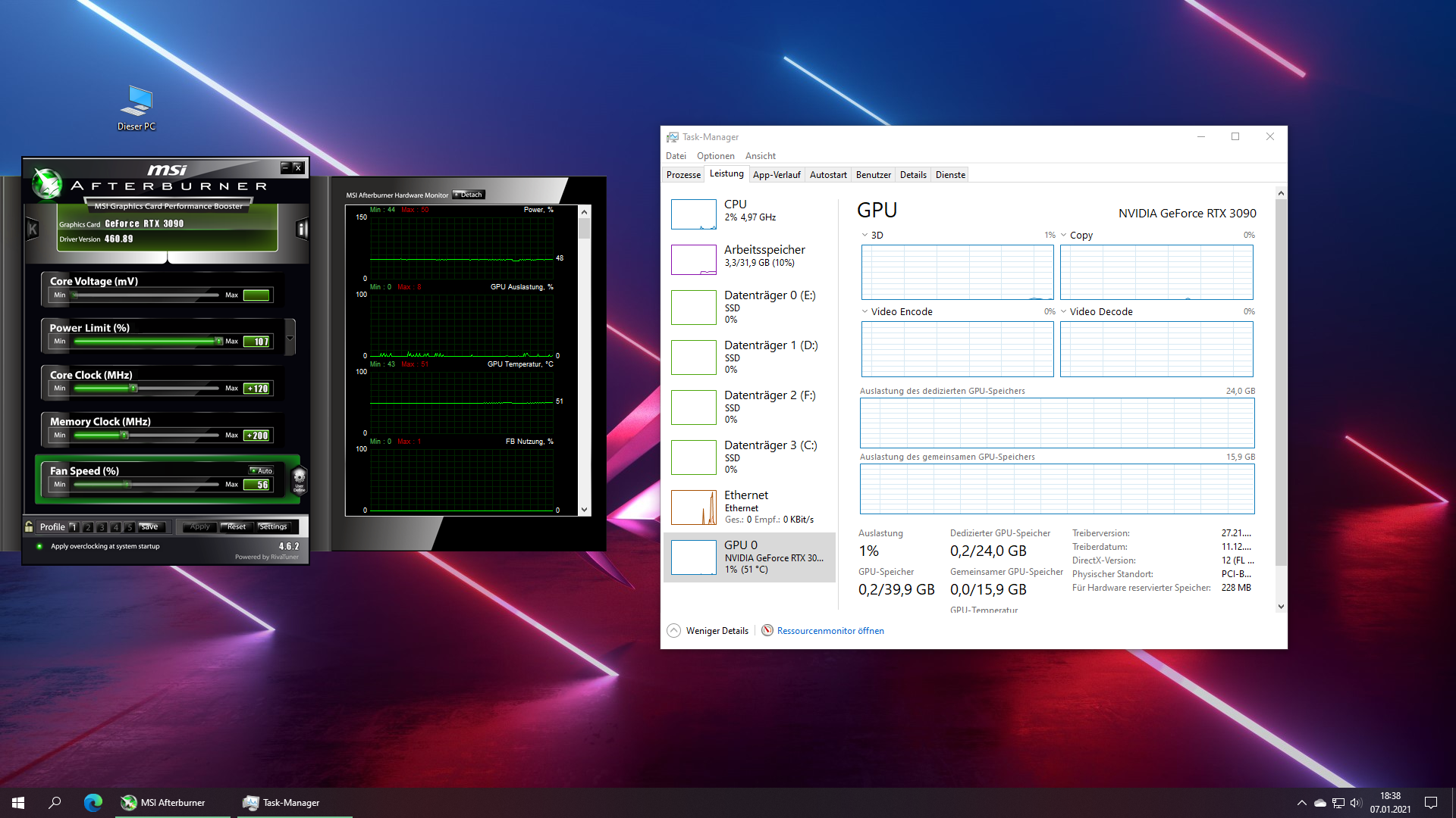 - Grafikkarte: EVGA RTX 3090 ULTRA FTW3