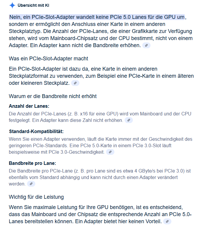 ... Habe das Mainboard mit 4x NMVE voll bestückt und meine GPU läuft daher mit 8x statt 16x Lanes