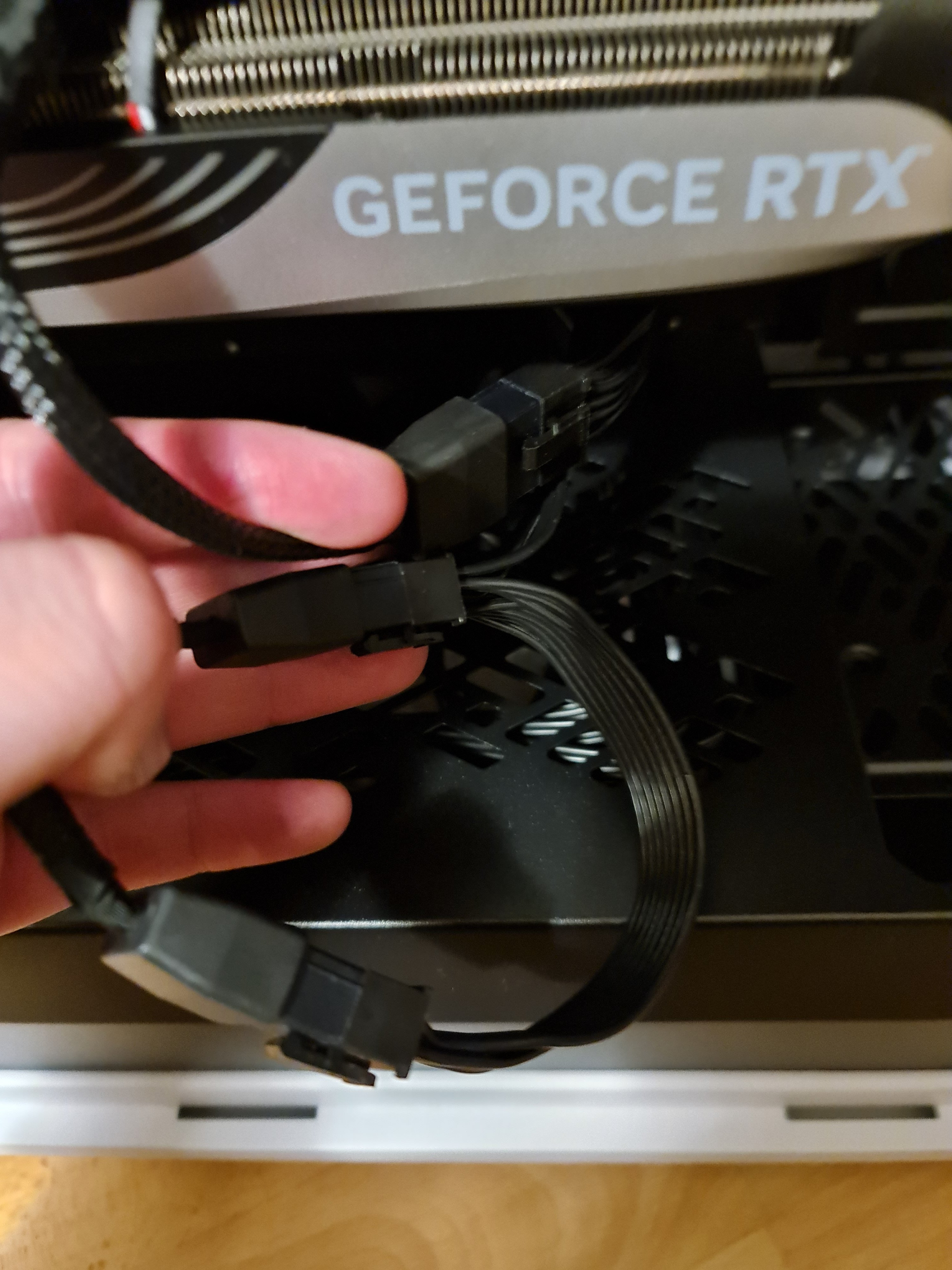 Hatte nur 2 x 8 Pin Pcie Kabel beim Netzteil dabei. Da sich das Kabel ja aufsplittet habe ich dann einfach noch eines vom aufgesplitteten eingesteckt. Könnte dass das Problem sein da der 4070ti adapter ja 3 x 8 pin hat ?