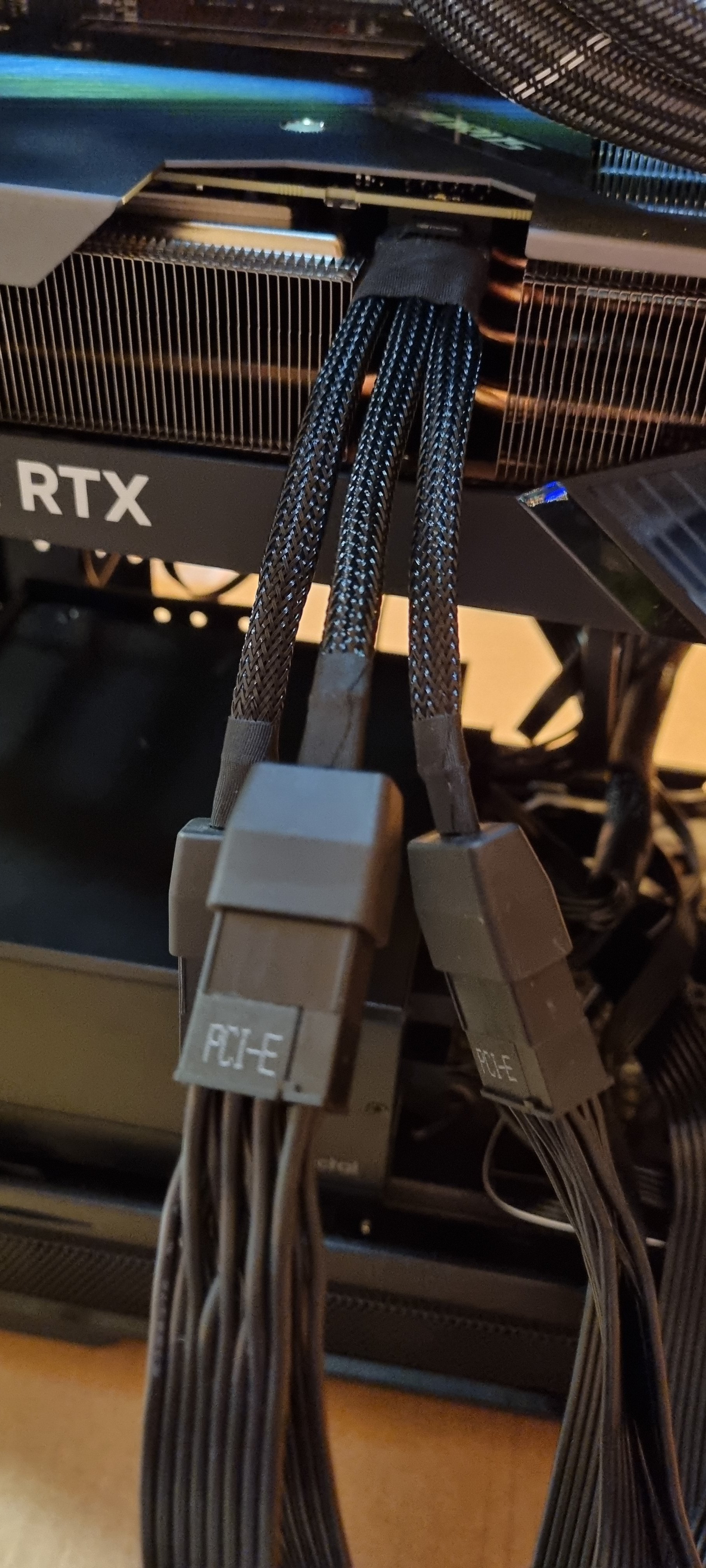 Hallo. Corsair bietet für seine aktuellen Netzteil-Serien auch eigene 12VHPWR Kabel an. Auf Netzteilseite dann 2x 8Pin, anderes Ende der 12VHPWR Stecker. Läuft hier bei mir einwandfrei.