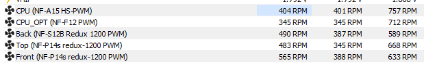 Jaaaaaa .. noch so ein Thema .. das sind durchweg Noctua Redux .. ich nacher mal im HWinfo, wie die so laufenTr8or schrieb:Welche Lüfter sind das?