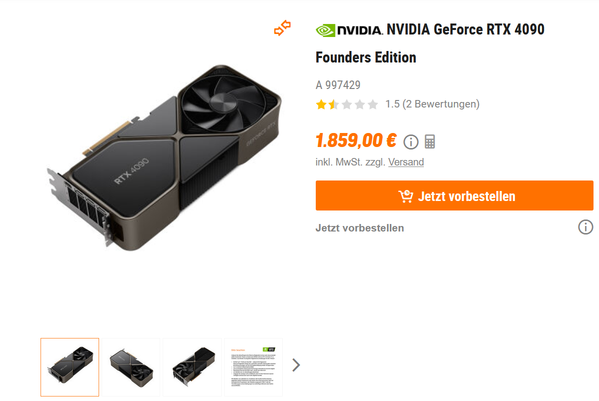 Im Gegensatz zu bisher, lässt sich die 4090 FE bei notebooksbilliger.de jetzt vorbestellen.