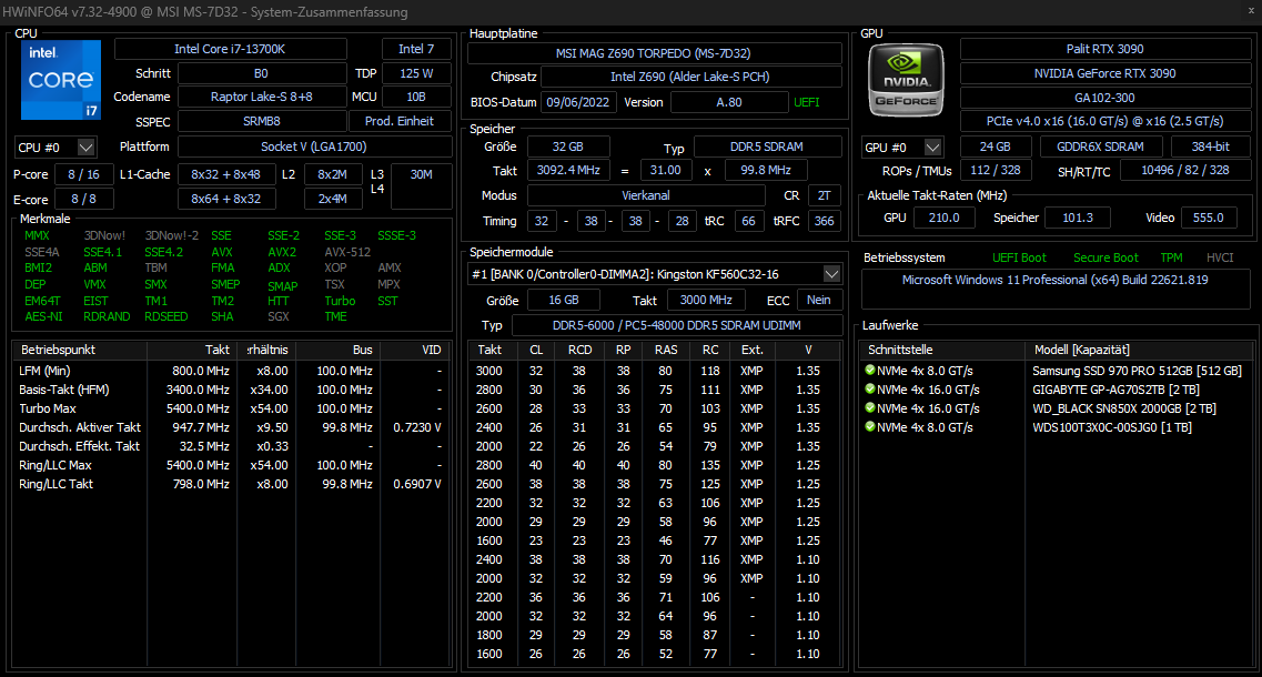 - Grafikkarte: NVIDIA RTX 4090 MSI Gaming Trio X