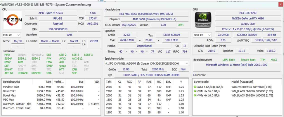 - Prozessor (CPU): AMD Ryzen 9 7950x