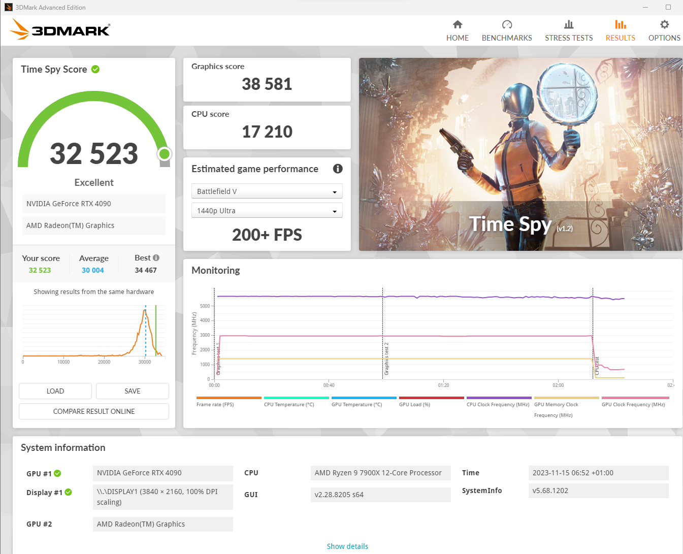 Da fehlen doch auch ein paar Punkte, oder? Jedenfalls min. 1.500, wenn ich die ~36K vom ComputerBase Test des 7950X3D mal herannehme (der zudem nicht mit Wasser gekühlt wurde).