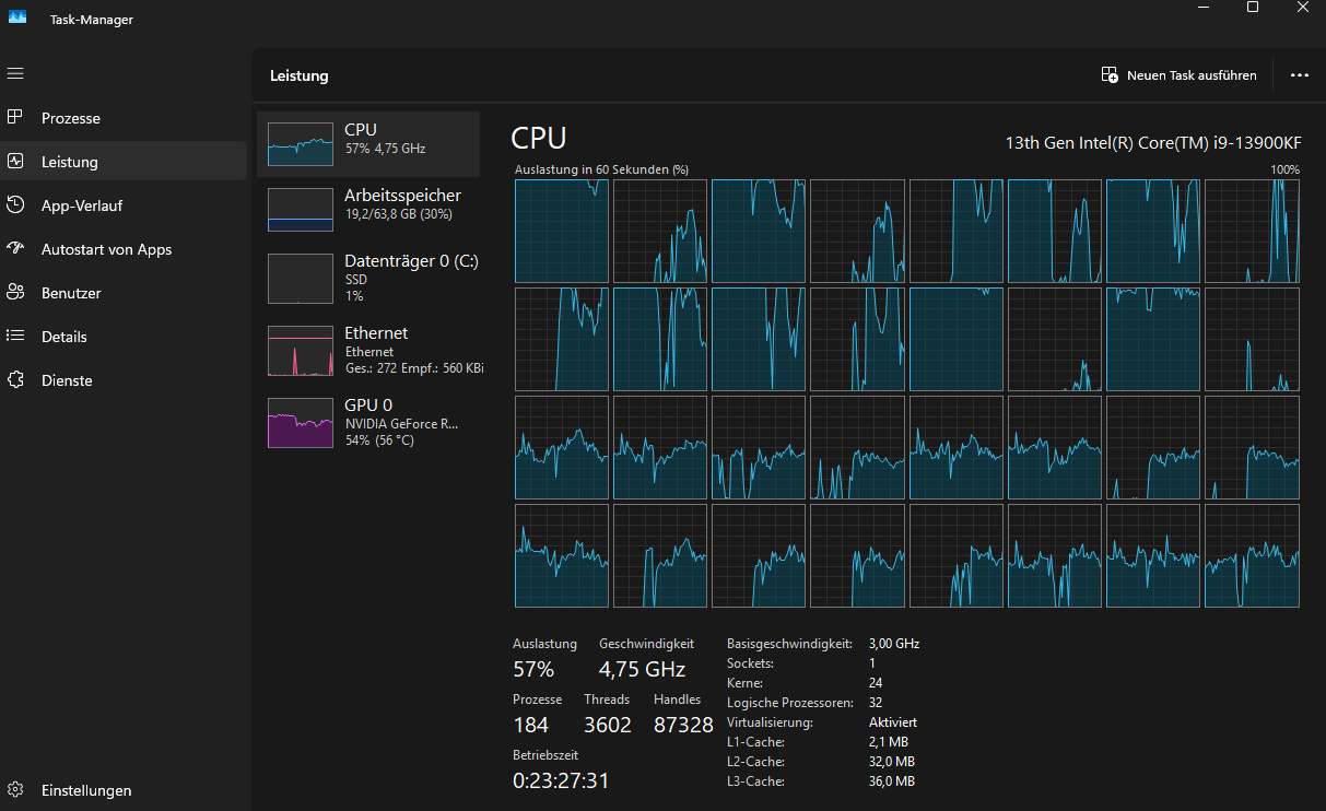 Läuft das Spiel auf einer SSD? Denn ich kenne ein Fall, da hatte ich mich auch gewundert, weshalb ein neues System mit einem 13900K Prozessor (Rechner von meinem Sohn) in COD voll am Ruckeln war. Er hatte das Spiel auf einer HDD installiert und als danach das Spiel auf einer SSD verschoben wurde, lief es ruckelfrei.