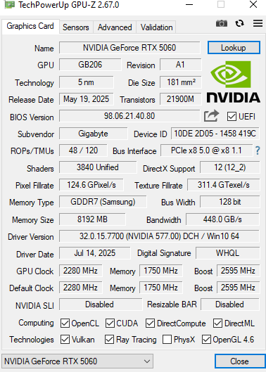 Zuvor war in ihrem System eine AMD-GPU verbaut, die sie problemlos genutzt hat. Nach dem Ausbau der AMD-Karte und dem Einbau der RTX 5060 haben wir zuerst wie empfohlen im abgesicherten Modus mit DDU sämtliche AMD-Treiber entfernt. Anschließend wurde der aktuelle NVIDIA-Treiber installiert. Anfangs lief alles soweit auch gut, die RTX wurde erkannt, Bild war da, Spiele starteten. Aber uns fiel schnell auf, dass die RTX zwar funktioniert, aber nicht so, wie sie sollte: DLSS 3/4 und Frame Generation wurden überhaupt nicht unterstützt, obwohl das bei der Karte eigentlich Standard sein sollte.