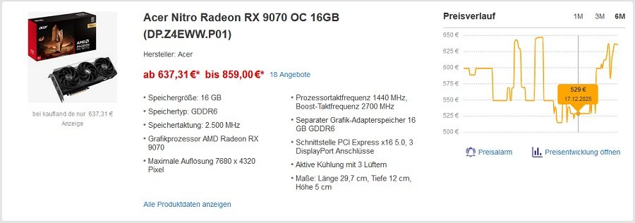 RX 9070: 529€ -> 637,31€ sind auch +20,5%