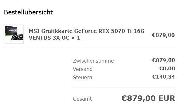 Zum heutigen Marktstart der Nvidia GeForce RTX 5070 Ti vergleicht ComputerBase im Test die bereits getestete und für sehr laut befundene „MSPR-Variante“ MSI Ventus 3X OC zum UVP von 879 Euro Asus GeForce RTX 5070 TUF Gaming OC. Wer eine flüsterleise RTX 5070 Ti sucht, wird hier zum Aufpreis von 220 Euro (1.099 Euro UVP) fündig.