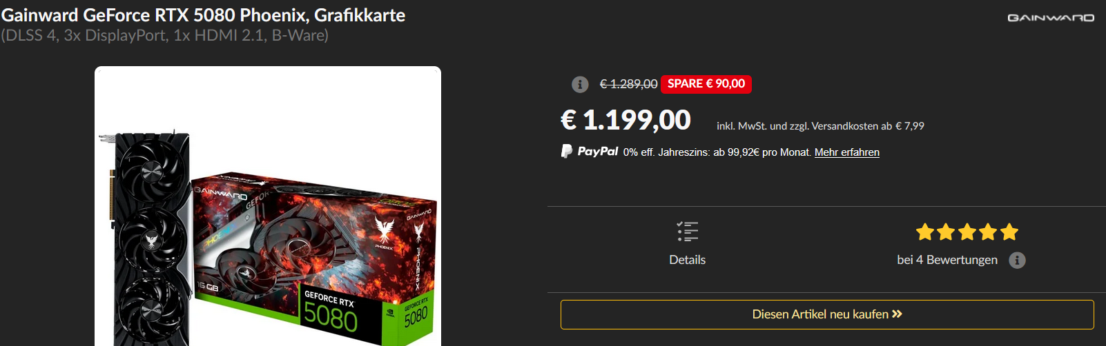 Die hast du dir bestellt? Auch gesehen, dass es B-Ware war?Quidproquo77 schrieb:Außerdem ist dieser angebliche "Paperlaunch" schon seit Wochen vorbei, es gibt 5070Ti und 5080 Karten schon zu UVP Preisen, vorher gerade eine bestellt.