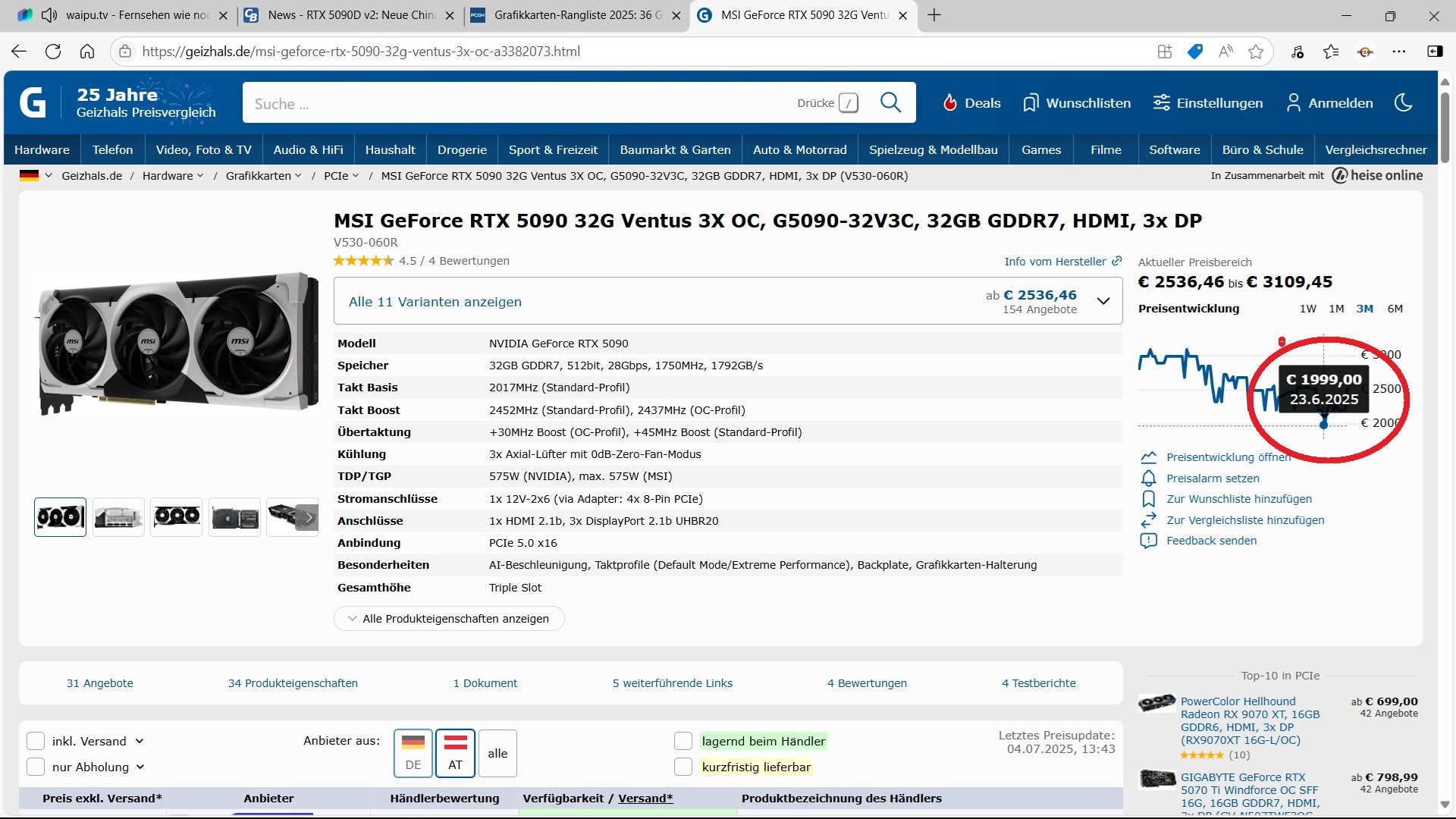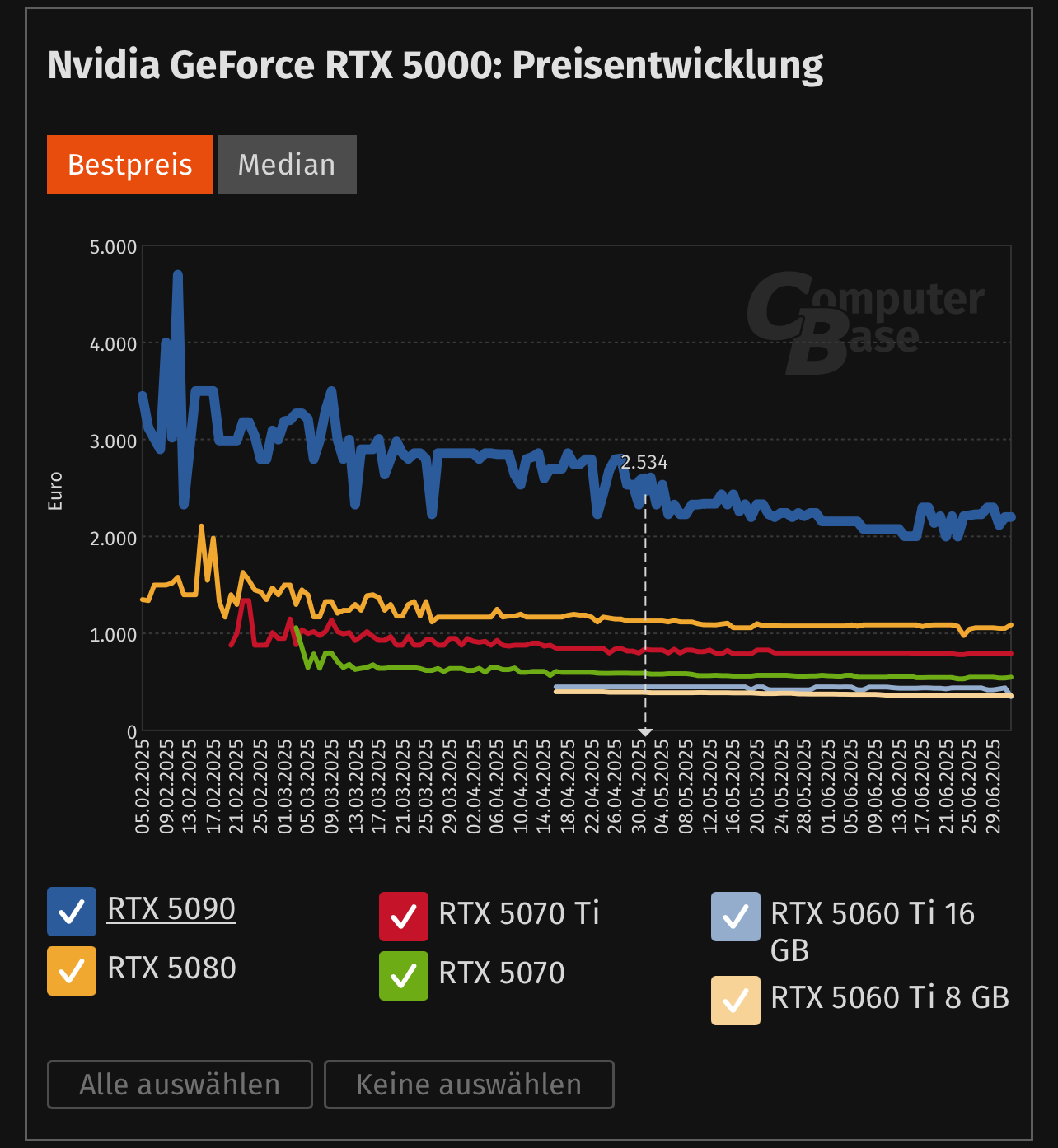 https://www.computerbase.de/news/gr...rstmals-fuer-unter-2-000-euro-verkauft.93237/„Günstig wie nie“: GeForce RTX 5090 erstmals für unter 2.000 Euro verkauft