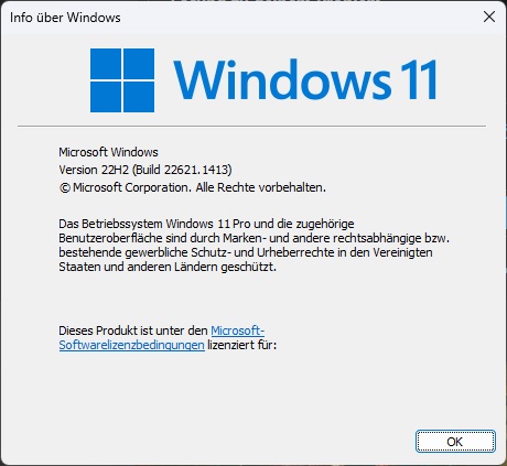 Aktuell ist Windows 11 22H2 (Build 22621.1413)