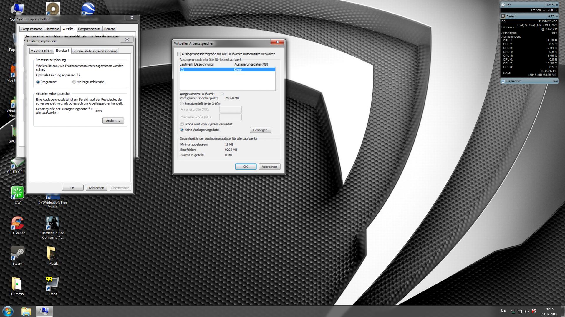 die auslagerungsdatei kannste unter "systemsteuerung->system->erw. systemeinstellungen->(leistung)einstellungen->erweitert" ändern bzw. deaktivieren. hab ich auch.
