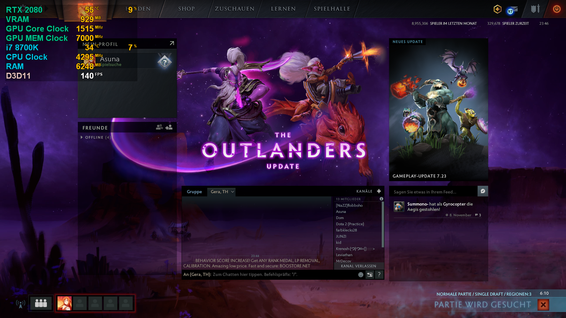 Immer mit der Ruhe... Nicht alle sind immer verfügbar und daheim am rechner. Für mich sehen deine Screenshots so aus, als hättest du ein Limit auf 140fps gesetzt bzw. v-sync an, weil es wirklich immer 140 fps sind, die angezeigt werden. Insofern weiß ich nicht, wo man da ein Bottleneck sehen soll. GPU und CPU scheinen sich beide zu langweilen, auch wenn ein CPU-Limit natürlich vorliegen könnte, falls nicht alle Kerne ausgereizt werden.