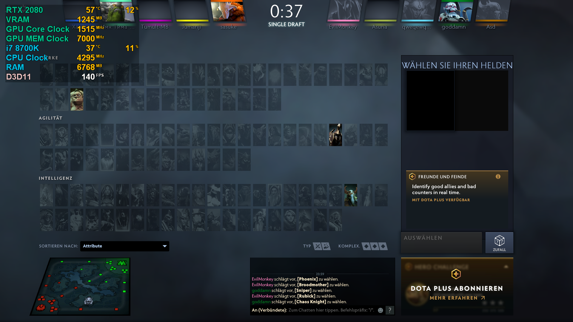 In Bild 3) Drafting-Phase ( Die Phase in der die Helden ausgesucht werden )