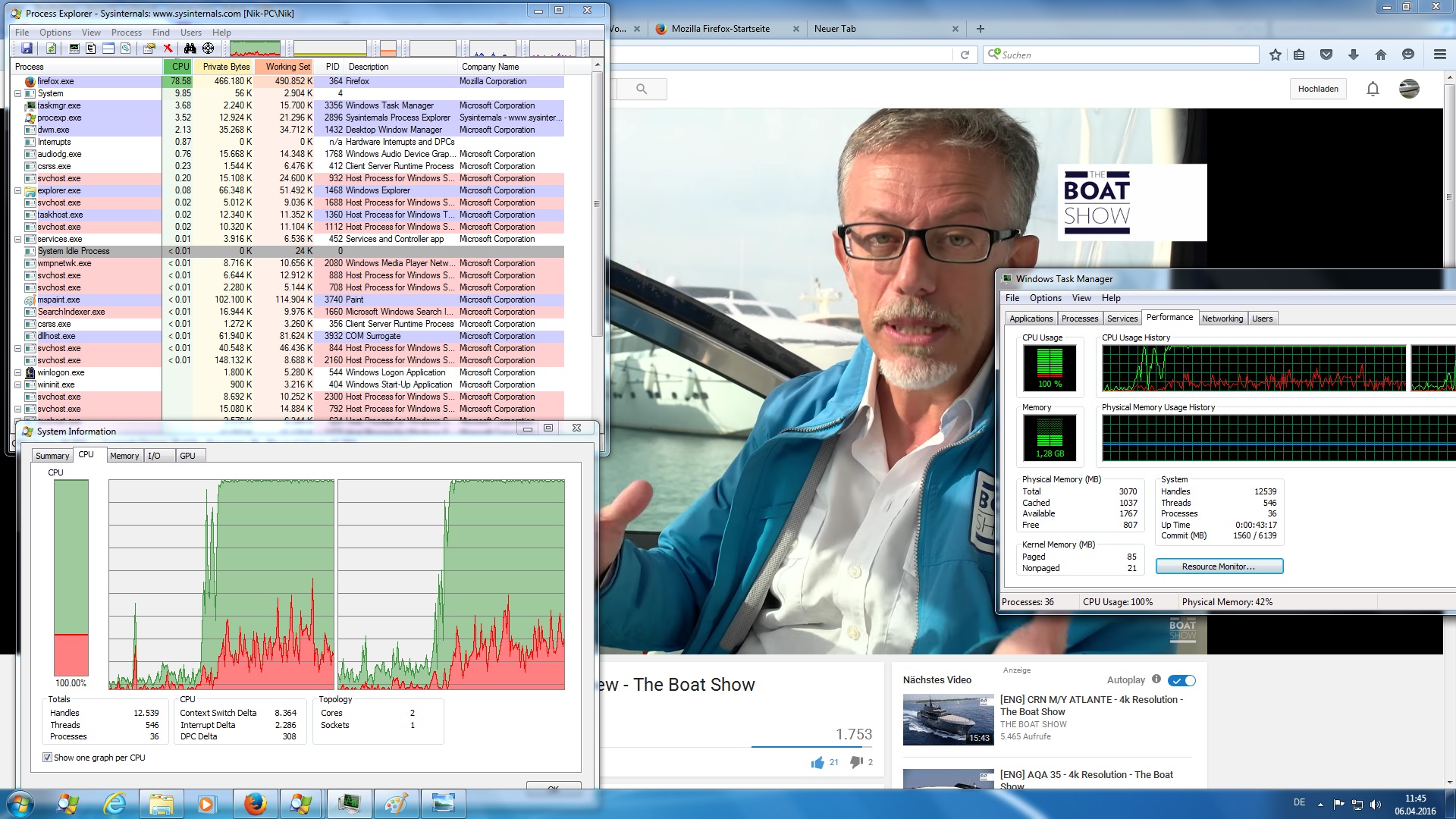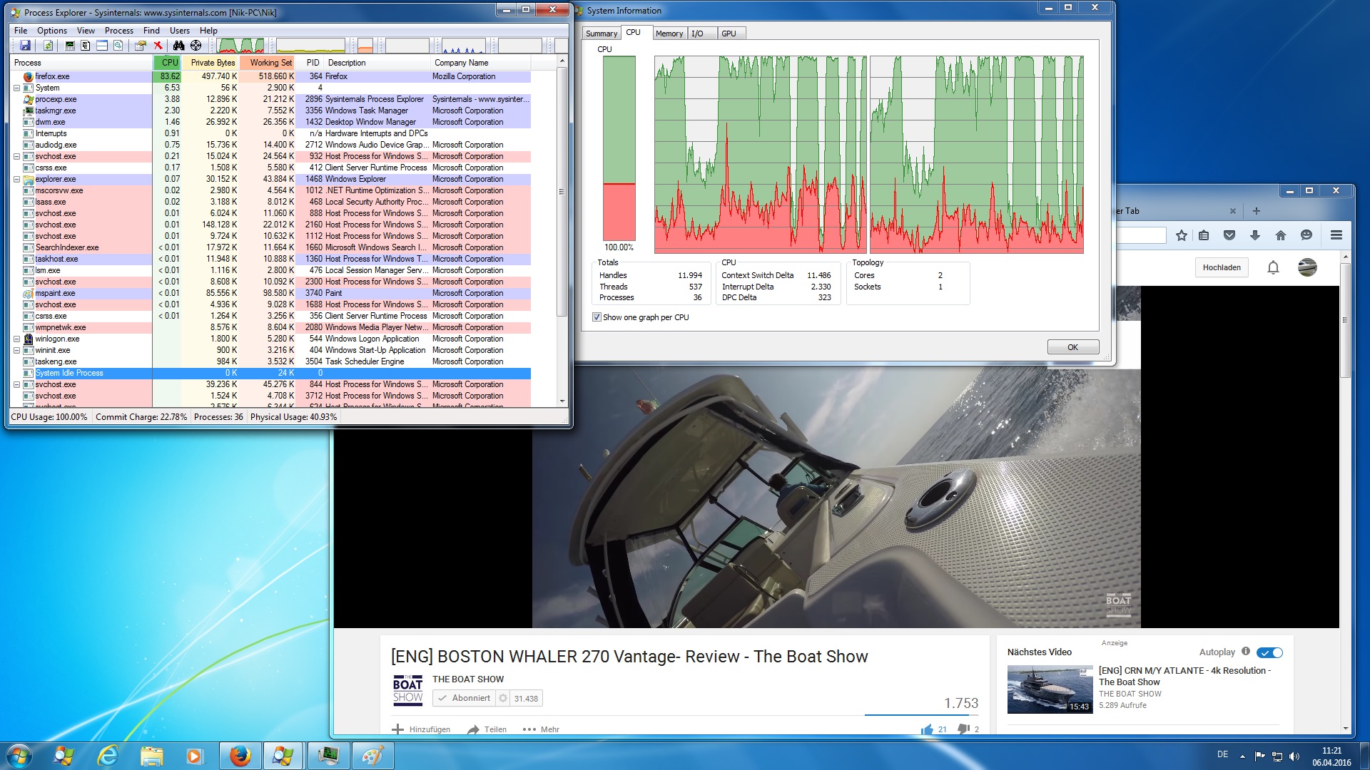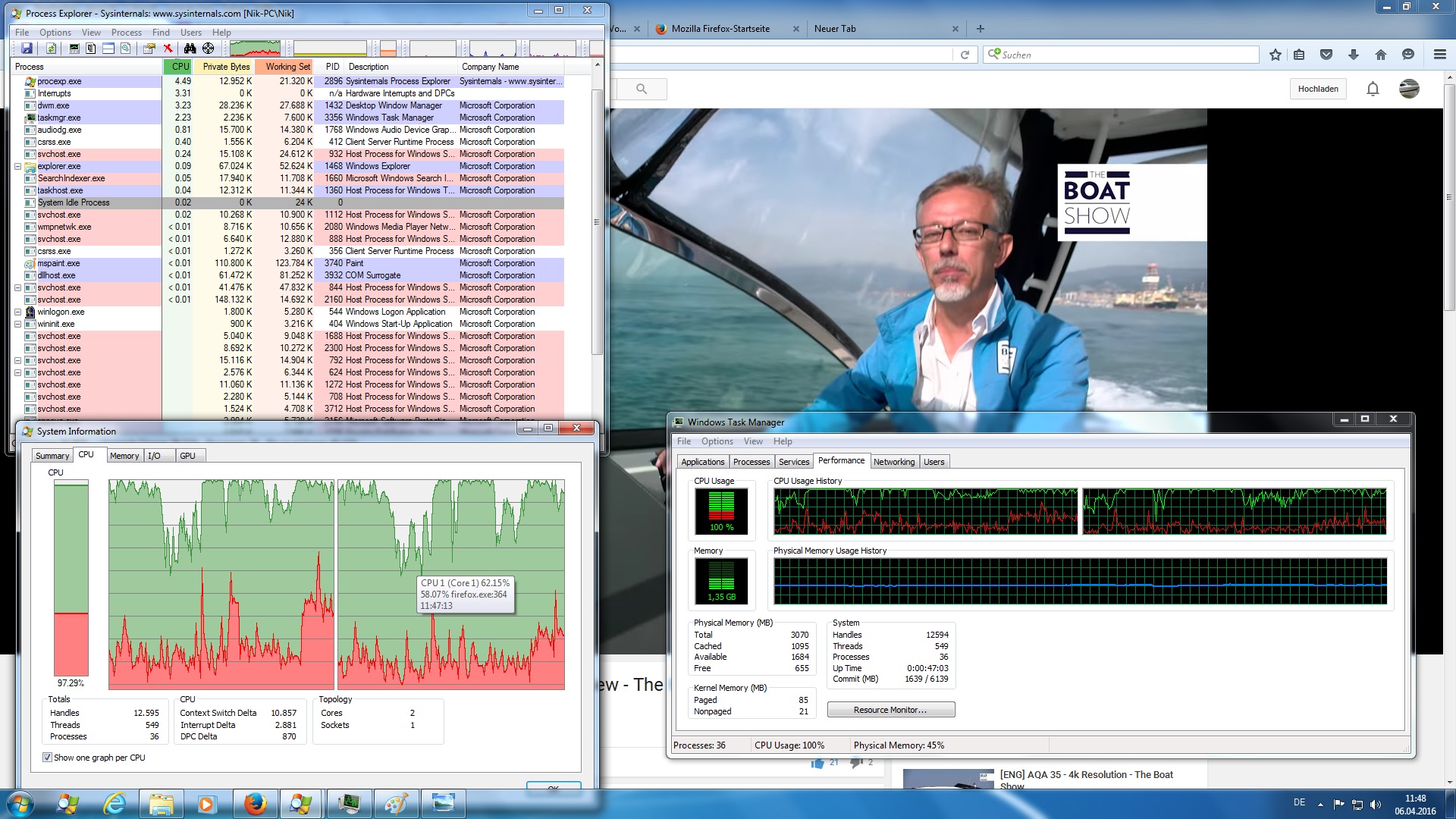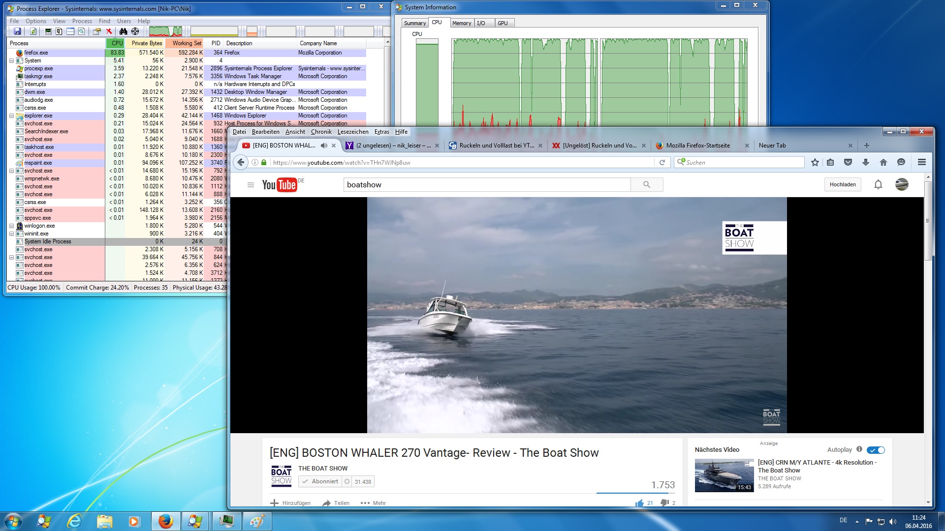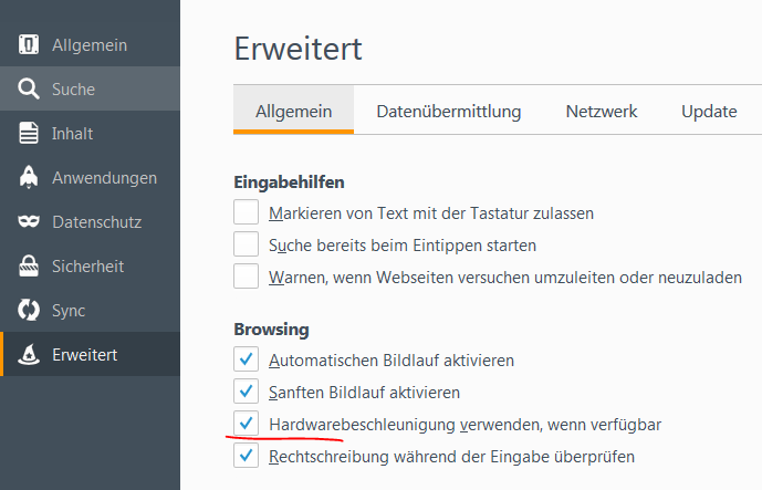 Als Browser benutze ich Firefox; bevor ich FireFox starte ist die CPU Auslastung sehr niedrig, nach dem starten von Firefox beträgt sie 2,56 GB Seicherauslastung und fast 90% CPU Auslastung und beim Video schauen fast 100%.