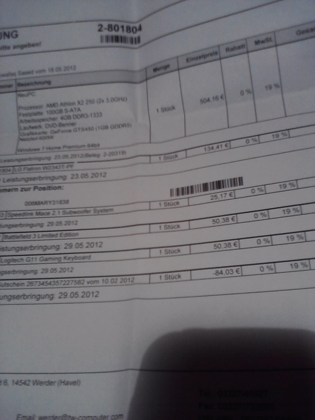 macht zusammen unschlagbare 285euro... falls du ne kamera, smartphone, scanner hast, mach mal bitte ne rechnungskopie und lad die hoch und zeig die uns mal. und sag deinen eltern, dass du übers ohr gehauen wurdest, die sollen mit dir kommen...