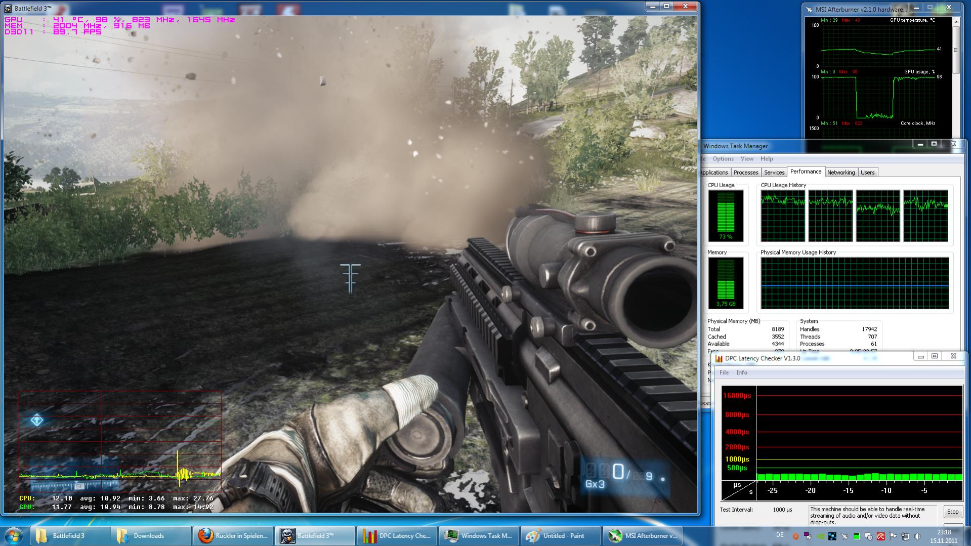 Scheint auch kein Problem zu sein. Ich hab die Settings mal auf High gestellt, die waren vorher auf Auto. Aber du siehst, insgesamt wird 3,75 GB von meinem RAM belegt. Also wenn du etwas bestellst, dann bitte auch noch einmal 4GB, die kosten ja recht wenig.