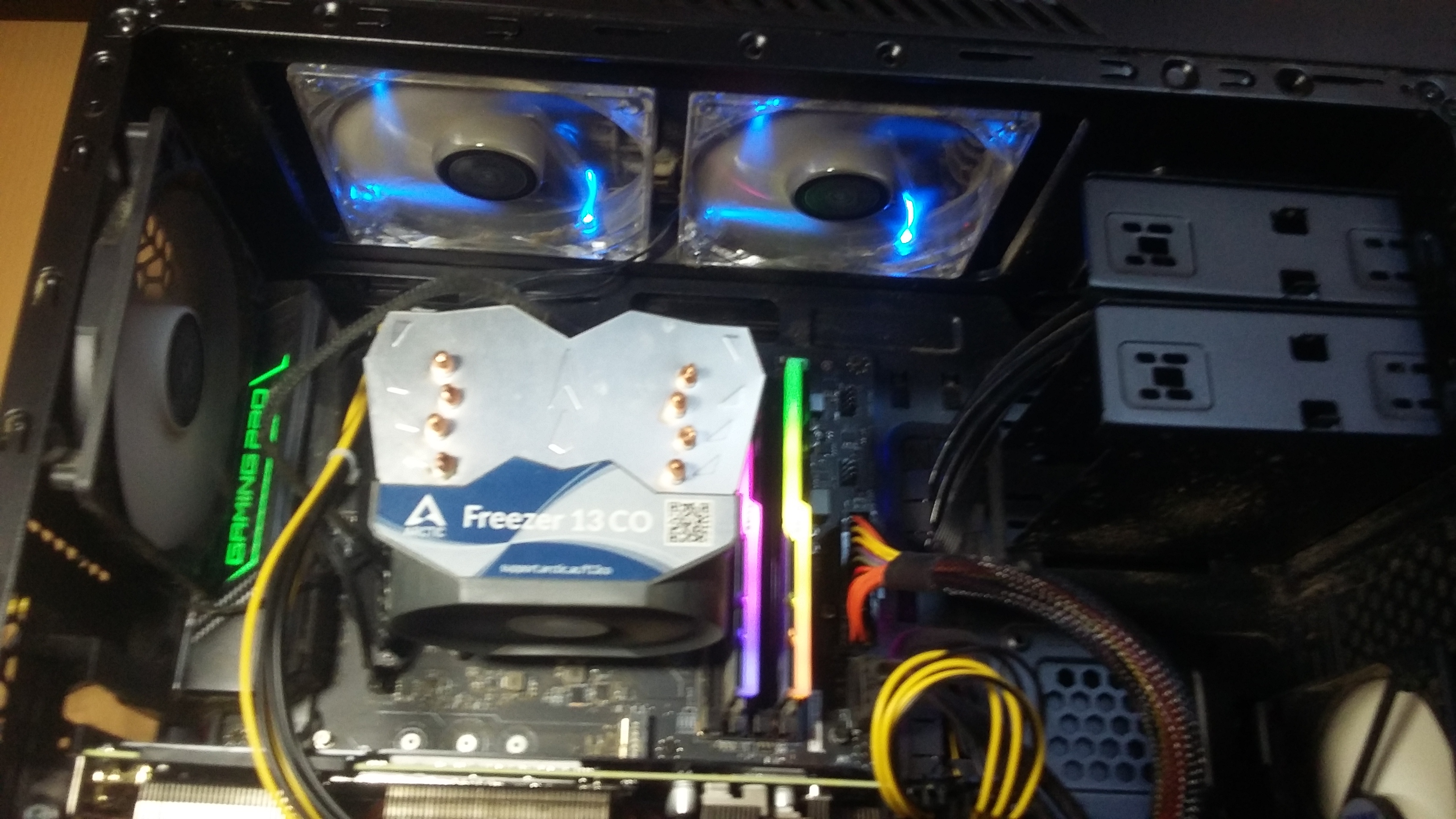 Das Kästchen unten links ist übrigens das Netzteil und das Kästchen oben links ist der CPU-Kühler.