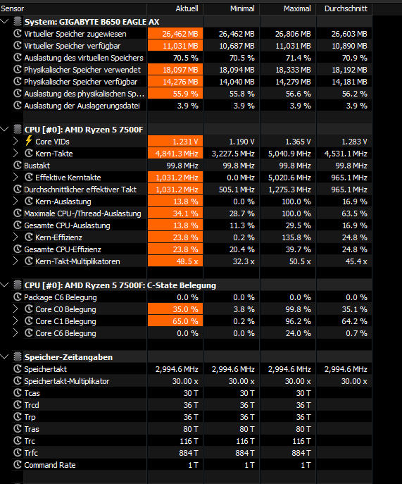 Ich habe einen neuen PC, gute Performance(3070 TI, AMD Ryzen 5 7500F, 32GB DDR5 6000Mhz RAM, NVMe SSD, genügend Kühlung für alles)