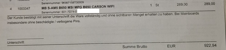 Mir wurde im Laden das Mainboard kurz gezeigt, und drauf verwiesen zack zack alle Pins aufm Mainboard schauen gut aus. ( habe selbst nichts gesehen daran)