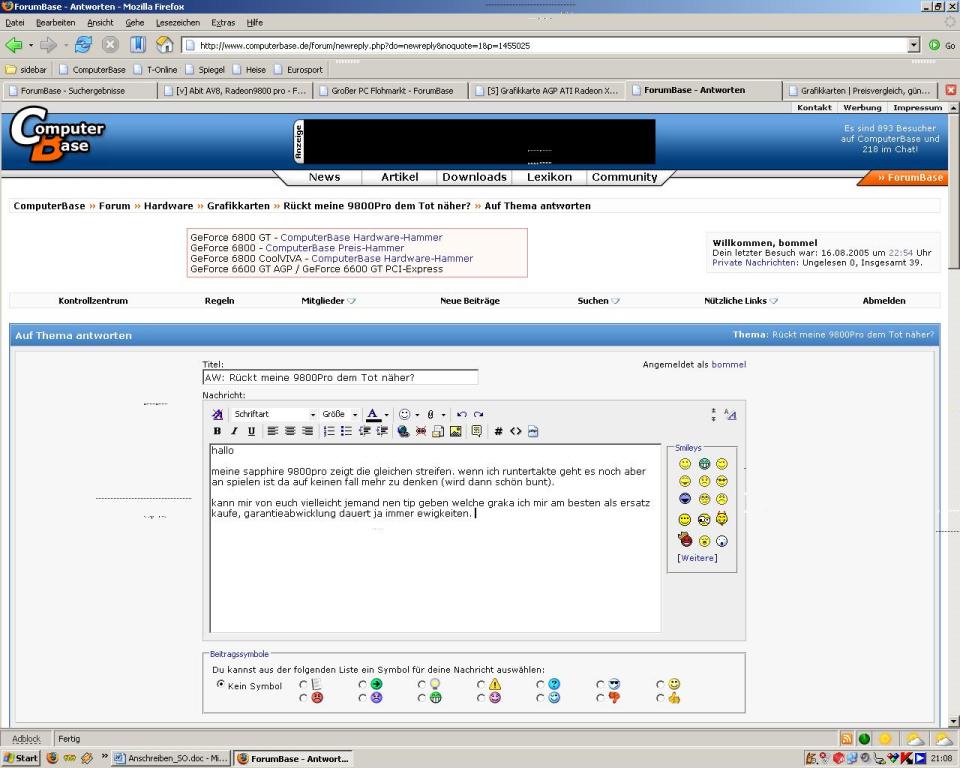 ich hab immer ab und zu probleme mit meiner MSI Rx9800Pro (r360)